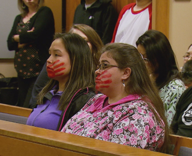 出席庭审现场的美国失踪和被谋杀原住民组织(MMIP)成员