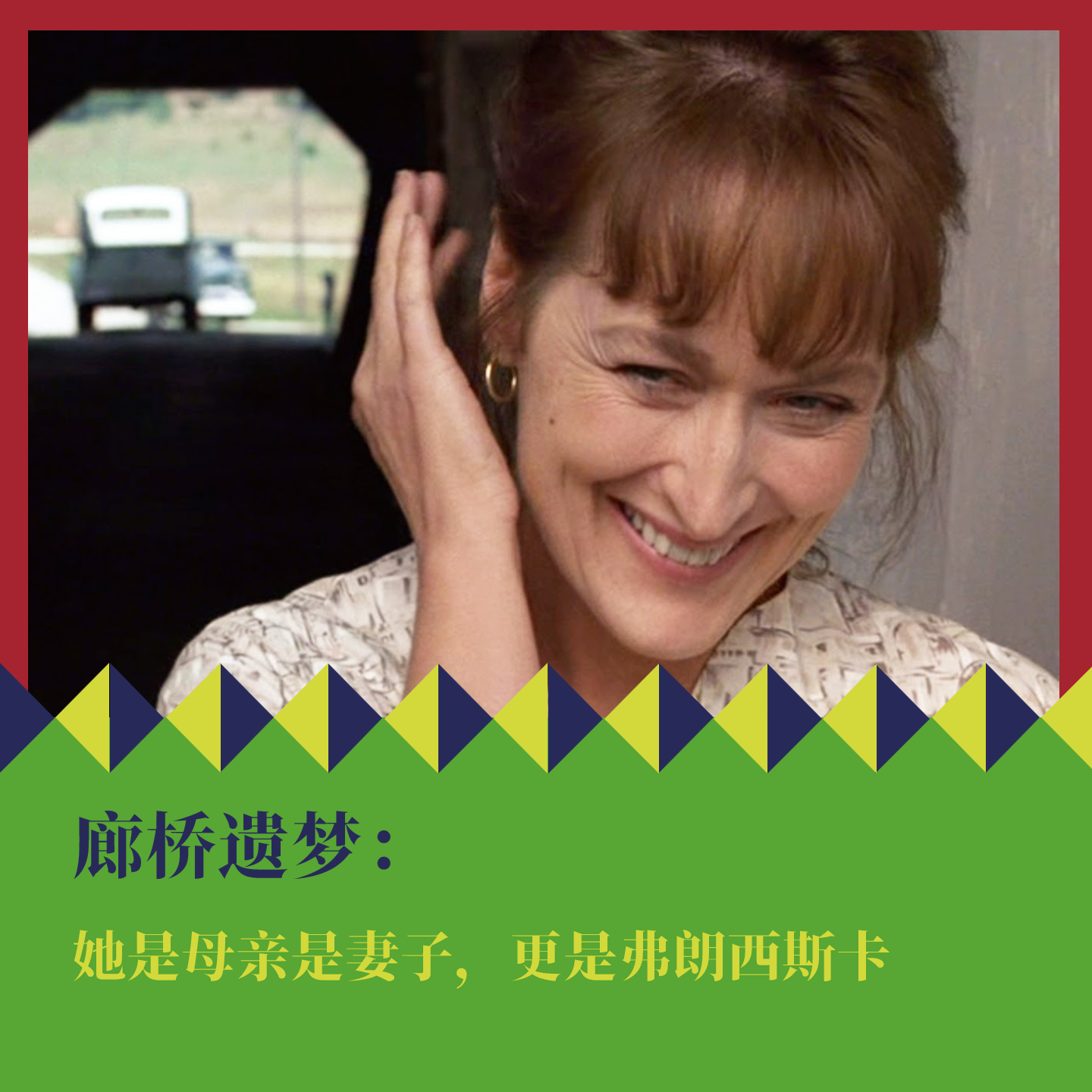 不是一个简单的婚外情或中年危机的故事。导演克林特·伊斯特伍德用克制与细腻的笔法,把一段四天的浪漫放在一生的责任面前对比审视。当看到弗朗西斯卡的压抑、苏醒与抉择,她让一段无法见光的私情最终成为了美丽的遗憾,也因为遗憾,引发了观者关于责任与代价的思考,以及不禁追问,到底何为真正的爱情?……