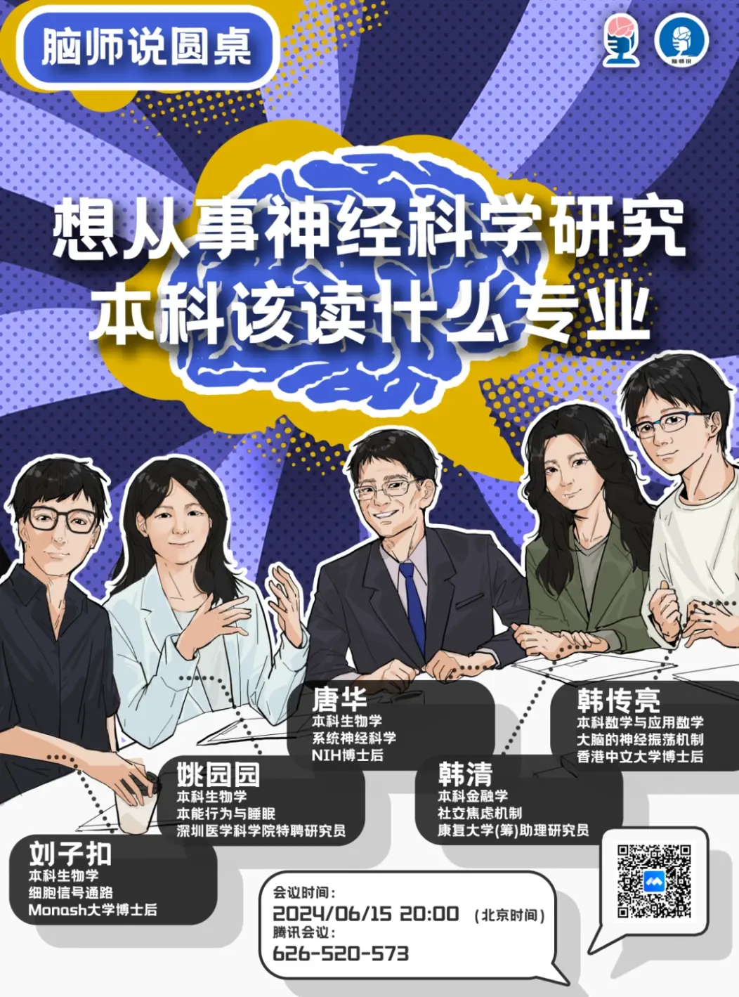 为了帮大家做好准备,我们邀请曾就读不同本科专业的四位嘉宾做客本期“脑师说”圆桌论坛帮大家答疑解惑。各位嘉宾将以自己的教育、科研经历为基础,探讨不同的本科教育背景如何助力不同神经科学领域的学术研究。