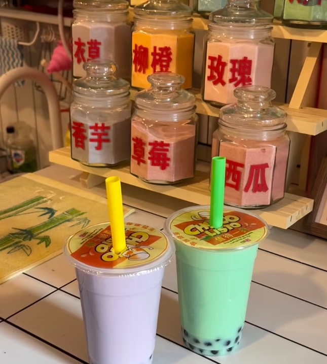 五毛钱一杯的粉末奶茶,连封盖都没有