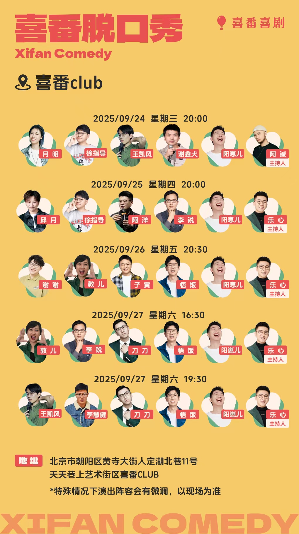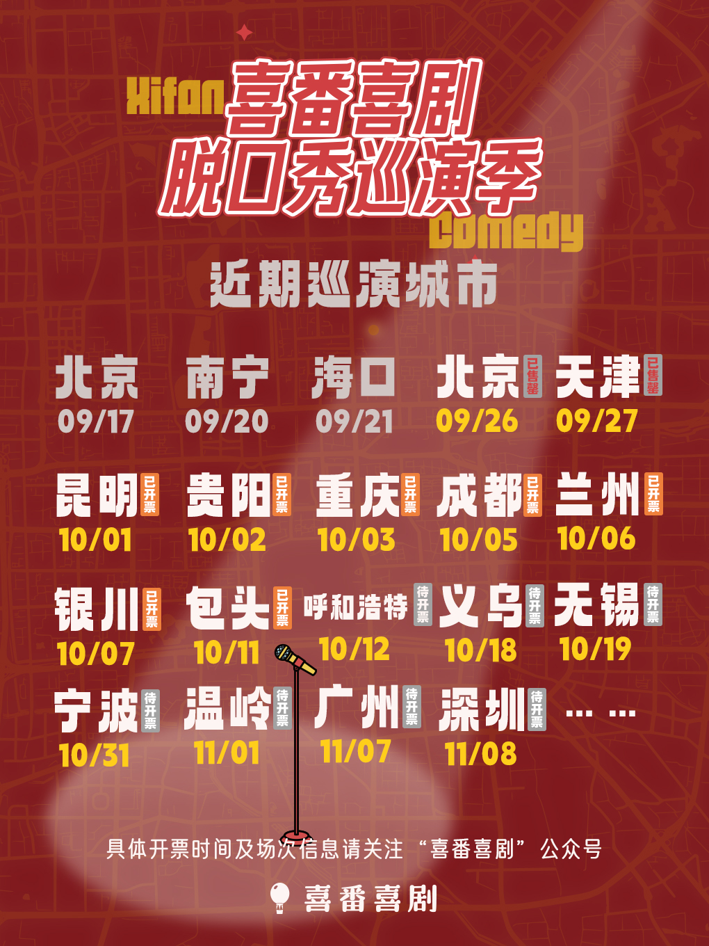 各大购票平台搜索“喜番喜剧脱口秀巡演季”即可购票