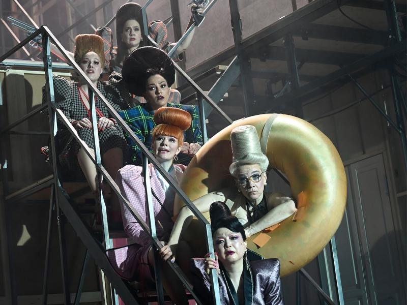 《Kill your Darlings》依托于本剧季最具灵活性的网络:一支由年轻柏林女体操演员组成的运动合唱队。独角表演者法比安·欣里希斯(Fabian Hinrichs)带着笑容将其介绍为“资本家的合唱队”,她们用精妙的杂技动作巧妙地挫败了一切逃离的企图。