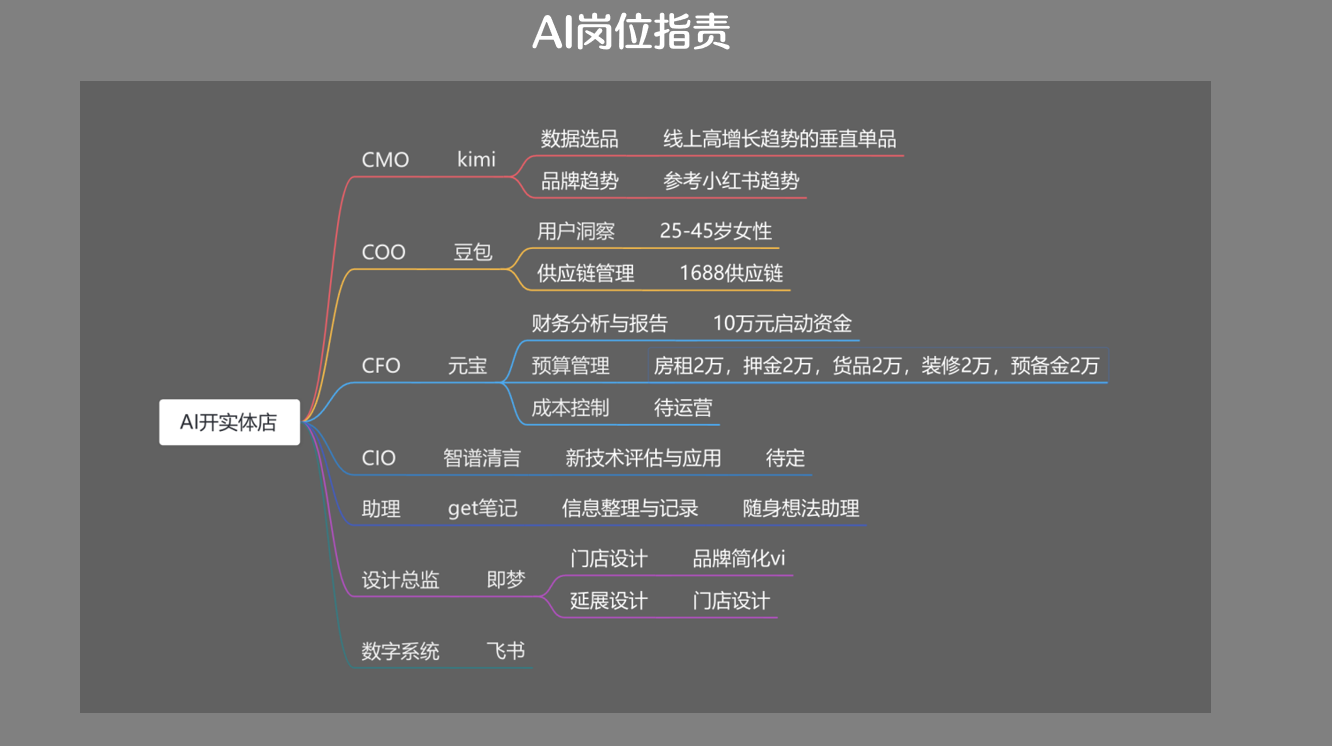 【AI高管团队】 李浩辰给不同AI分配的企业高管职位:豆包当COO、元宝当CFO、Kimi当CMO等。