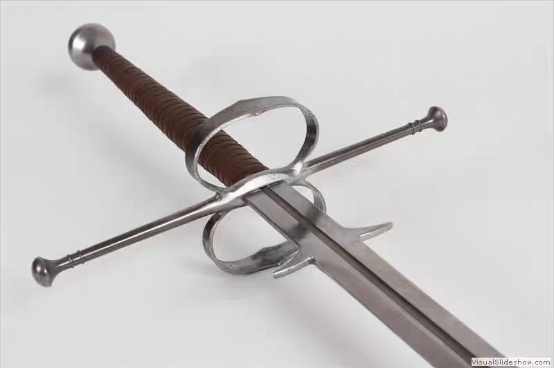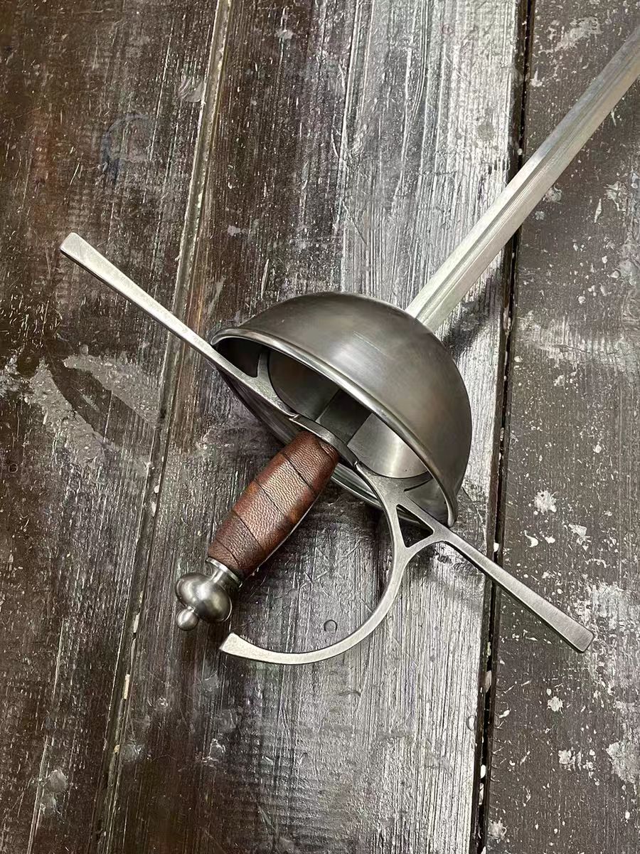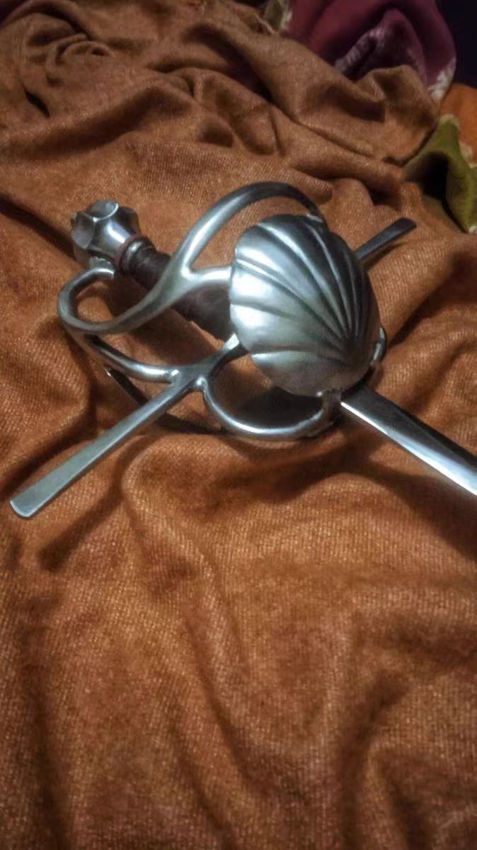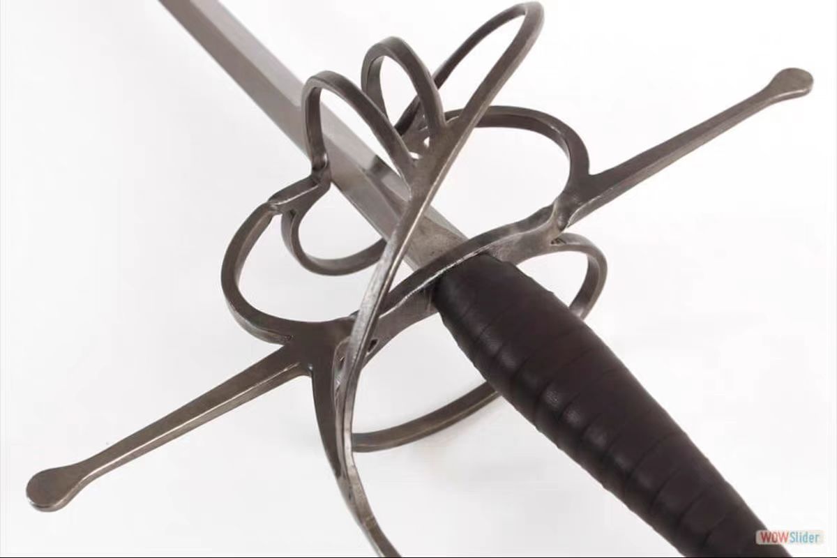 欧洲历史上的剑饰细节同样藏着故事:16-17世纪流行的贝壳状、螺旋状护手(既保护手腕,又通过镂空雕刻或镶钻提升美观性),本质是决斗文化催生的“功能+美学”产物——当时解剖学发展让人们意识到“刺击比斩击更致命”(伤口难愈合),单手剑因攻击距离更长更受欢迎,轻量化、强化刺击区的剑型(如“纸盾剑”,将大部分重量集中在剑身中部梯形区域以保证稳定性)随之流行,而护手的贝壳/螺旋设计正是为了保护持剑手应对密集刺击