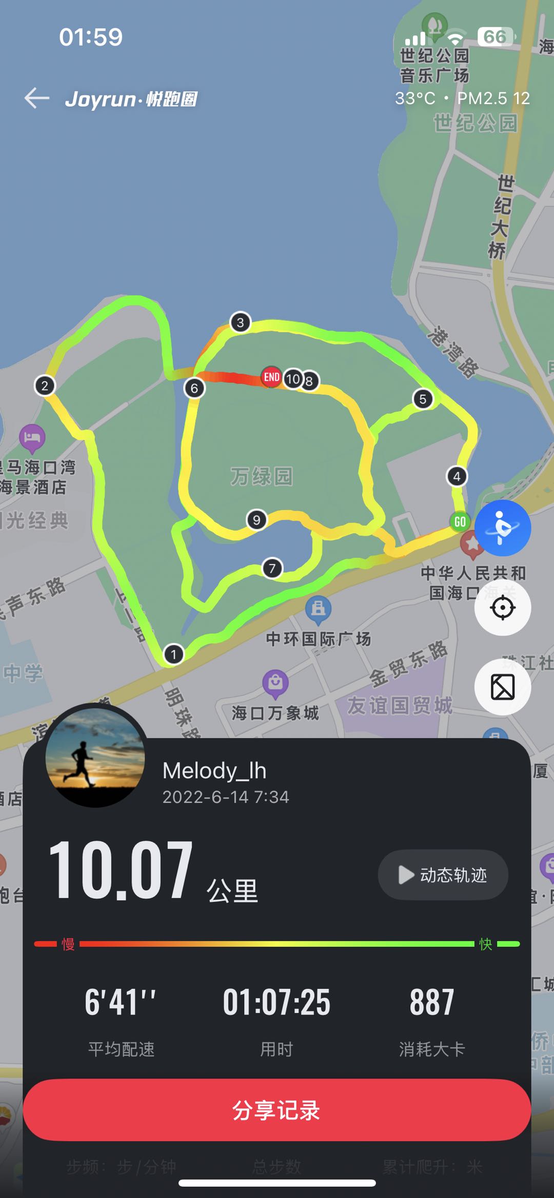 1:00:30 海边路线:海口万绿园最美海边公园,跑在海边和椰林,跑完来个冰镇椰子水;
