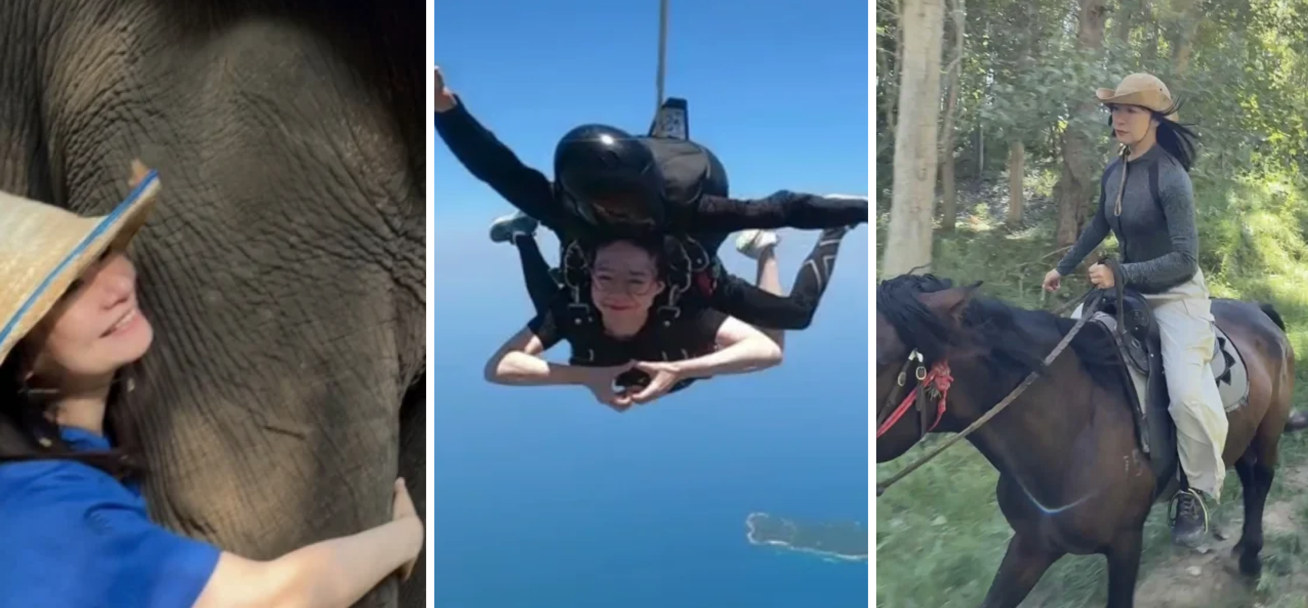我看过梨子同学的视频,就决定和她聊聊,出发一年,她骑马、冲浪、陪大象,也可能偶尔生病、疲惫、掉眼泪,她最喜欢的那本书,《梨子小姐与自己相处》可能是部虚构小说,但梨子同学想把自己活成这本书的现实原型。我知道失去线上兼职之后,她一定有不知所措的时刻,可我并不为她的未来担心,这个姑娘在生活干涸的时候,会背上行囊出发,就会在路上,遇见灵魂同频的朋友,和更加结实的自己