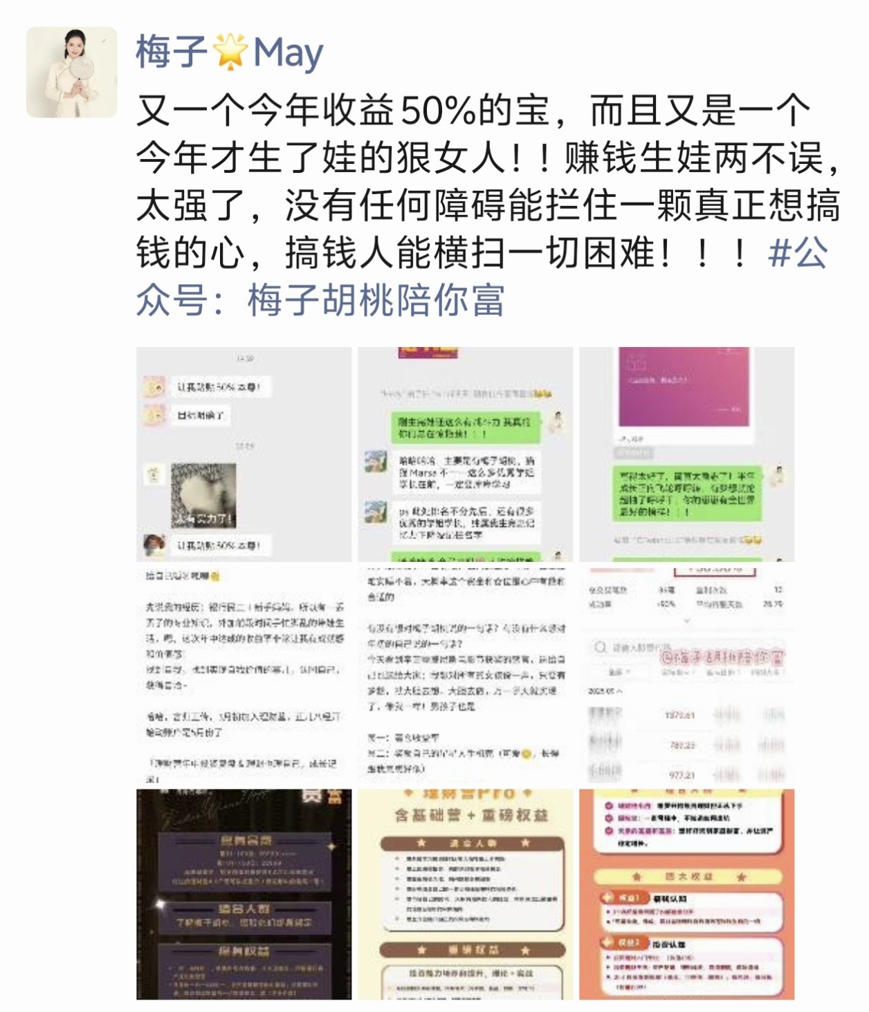 胡桃:2015年开始投资,女性之光,全能八爪鱼,既是保险经纪人又是理财营主理人还是服装行业创业者(创业一年营收千万),干啥啥行, 是谁靠近谁被充电的胡桃仙子!
