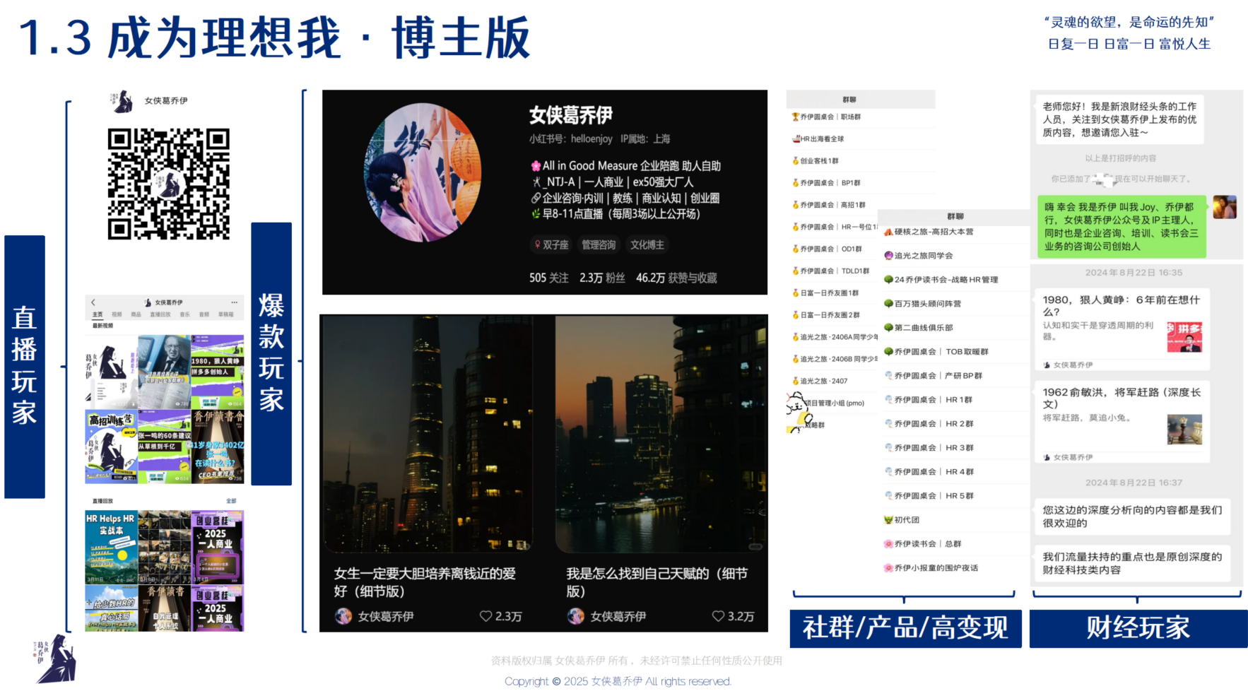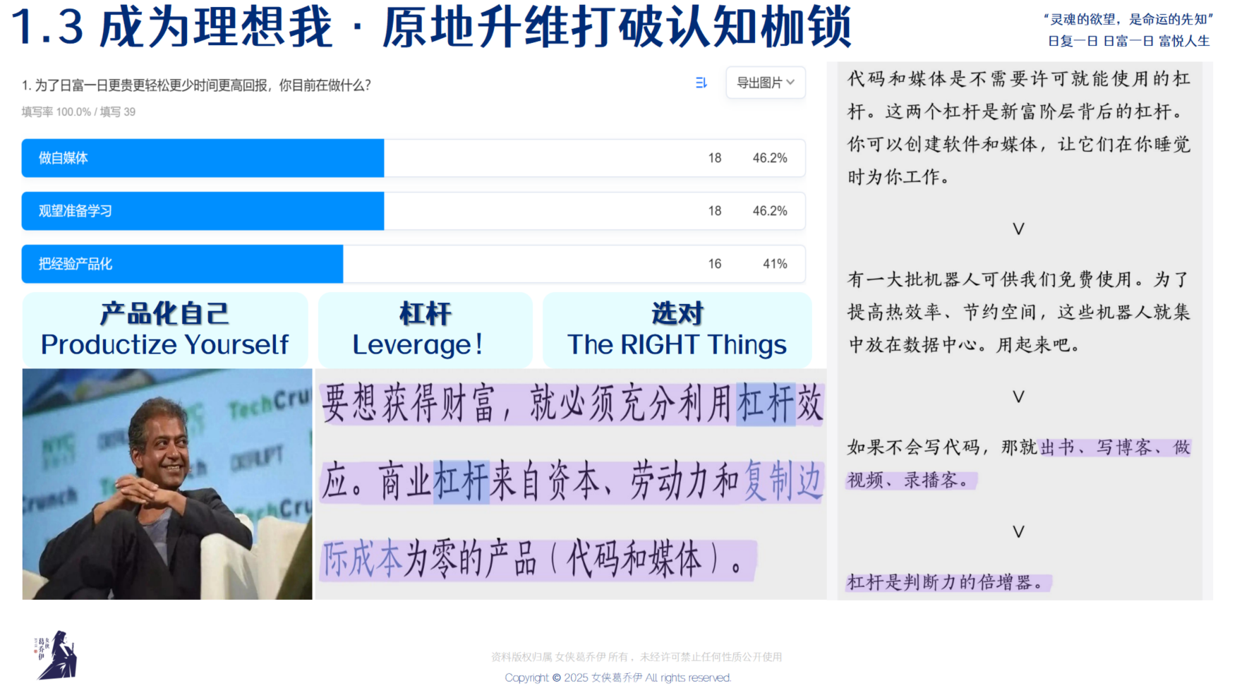 在今年唯一一次的《日富一日公开课》中,我们高密度、极简极实地分享:35岁一人创业的来时路、100个商业模式、多管道策略、百万爆品策略等生意脑、创业经,浓缩成几期播客分享给听友。