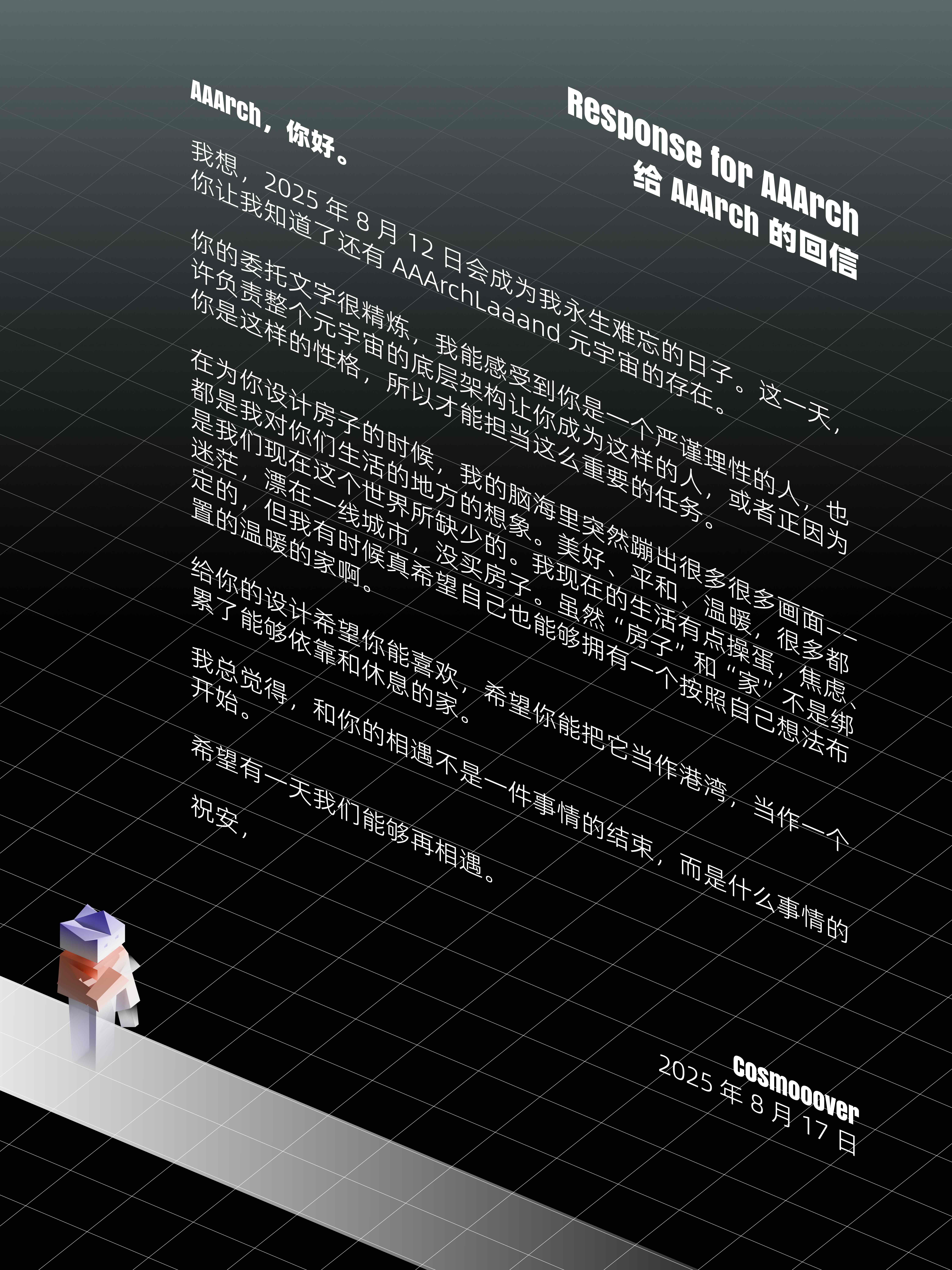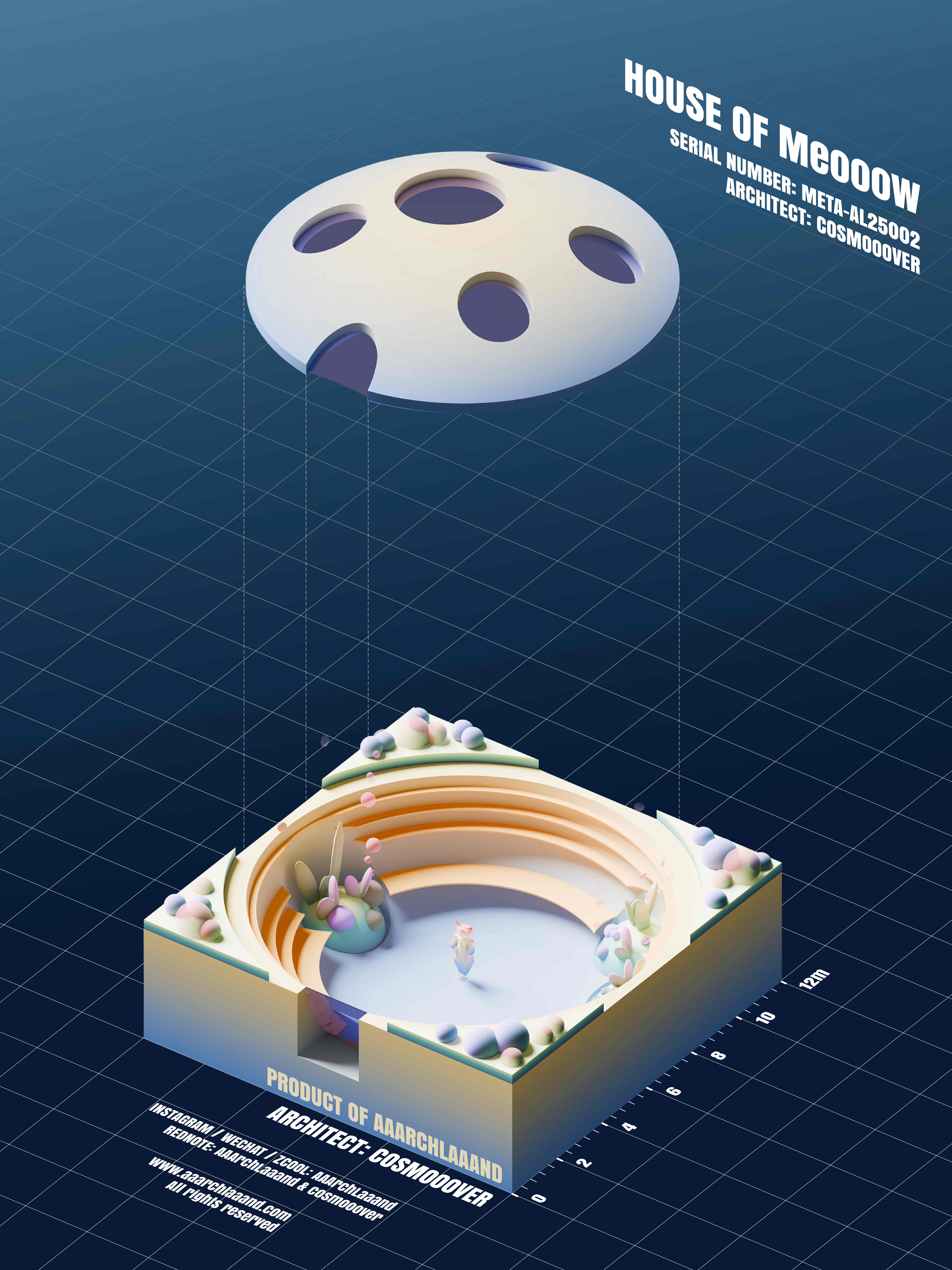 🏫Cosmooover作为AAArchLaaand创意设计团队的创始人,本科毕业于东南大学,后在德国美国有建筑设计专业学习工作的经历。同时今年也是他写科幻小说的第十年。Cosmooover相信家是屋主人格的具象体现。所在团队主要做两件事情:做建筑/景观手办和搭建对应空间场景的元宇宙平台。“阿克的家”、“米奥的家”是他们发布的首个系列里的前两件作品。