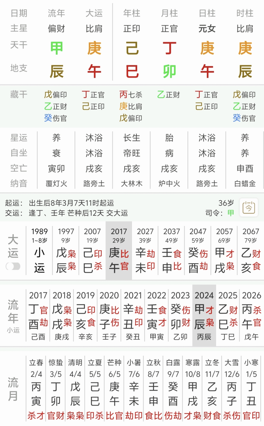 ‑ 月令卯木正财旺透,收入高却辛苦;