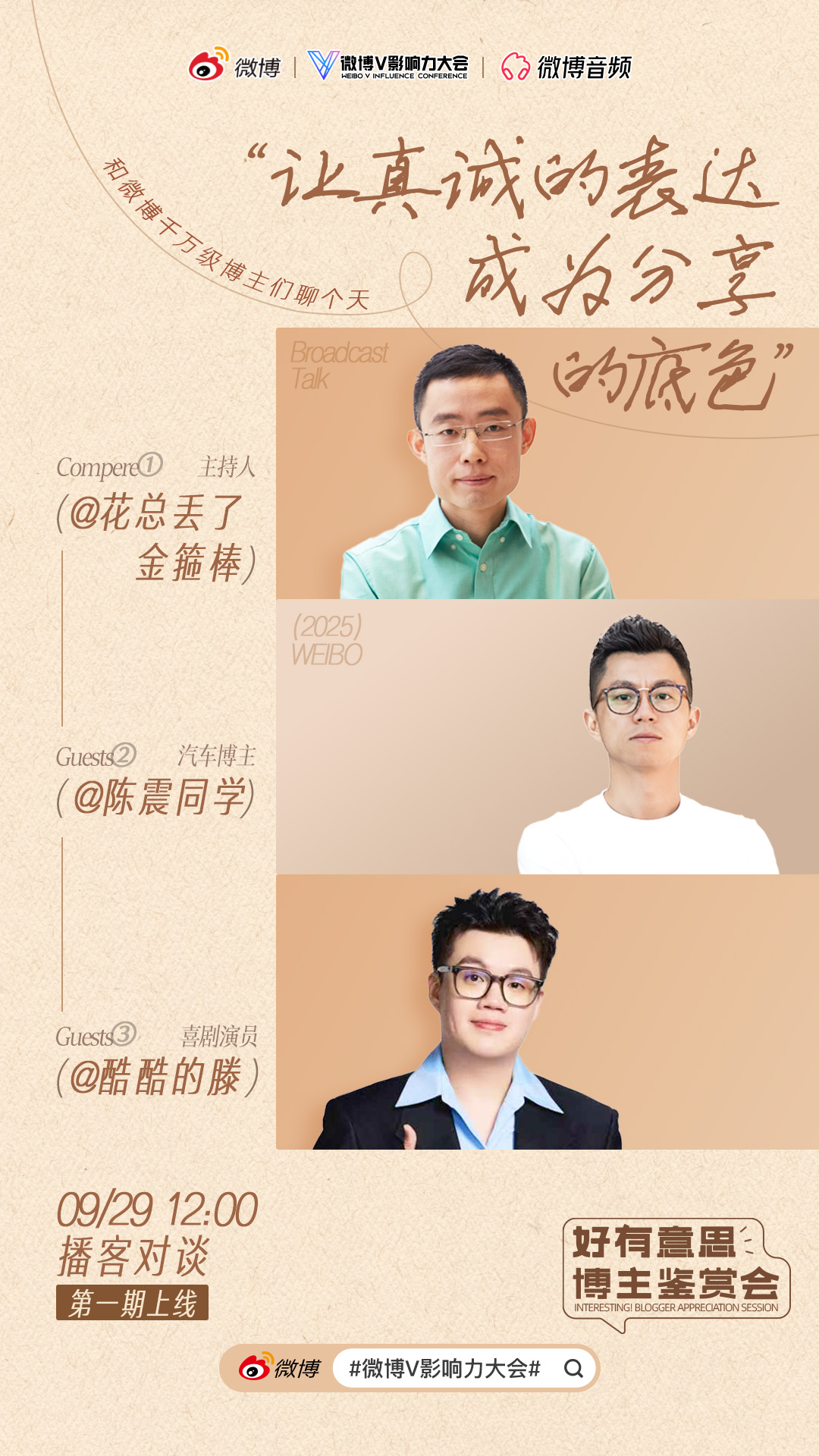 这是微博V影响力大会“好有意思博主鉴赏会”的首期博客。在这场对谈中,我和@陈震同学、@酷酷的滕 聊了工作与生活,试图呈现千万博主在线下的另一面。