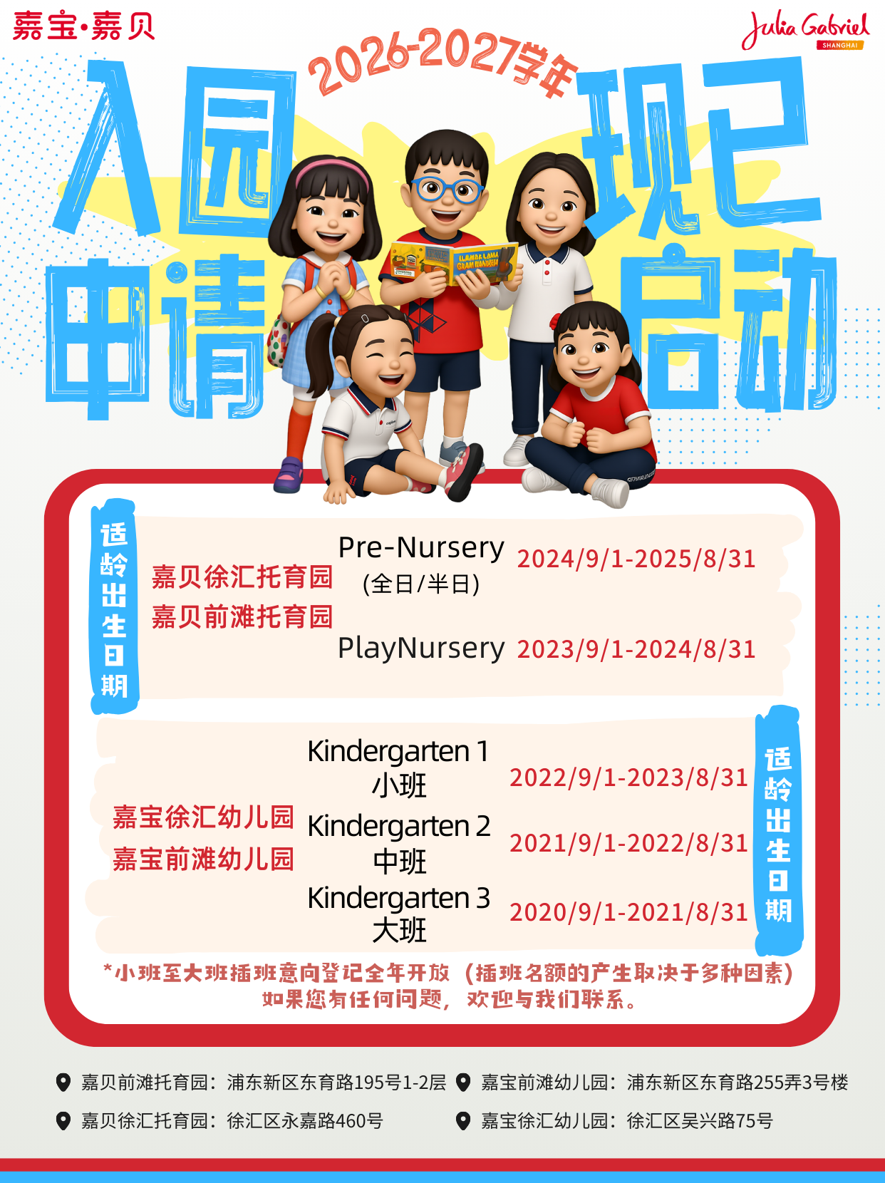 嘉宝·嘉贝公众号:嘉宝·嘉贝新学年申请正式开启 | 以心迎新,共启嘉程 2026-2027 Enrollment Now Open