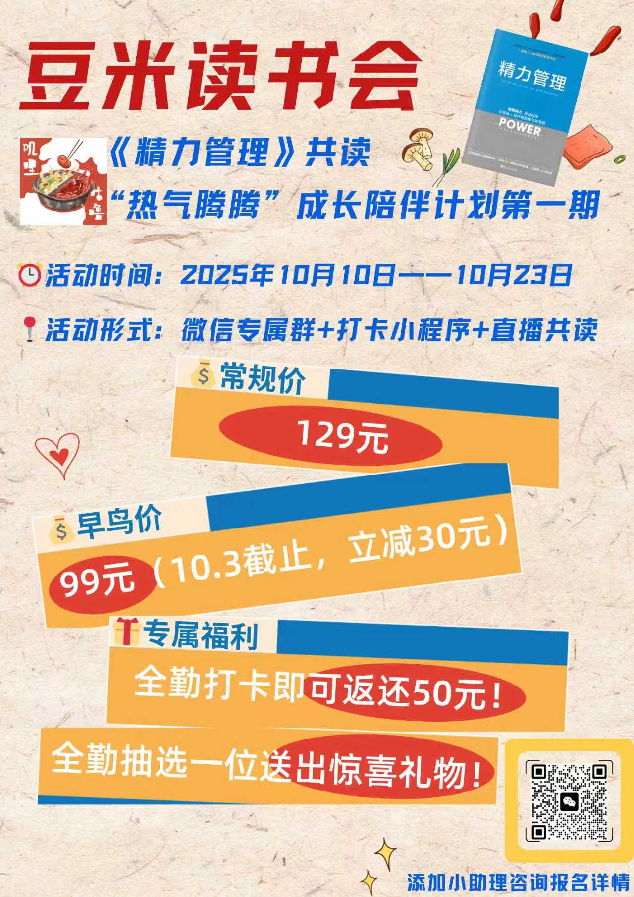 线上读书会:围绕《精力管理》这本经典大书,14天一起拆解+实践,详细介绍和报名如图