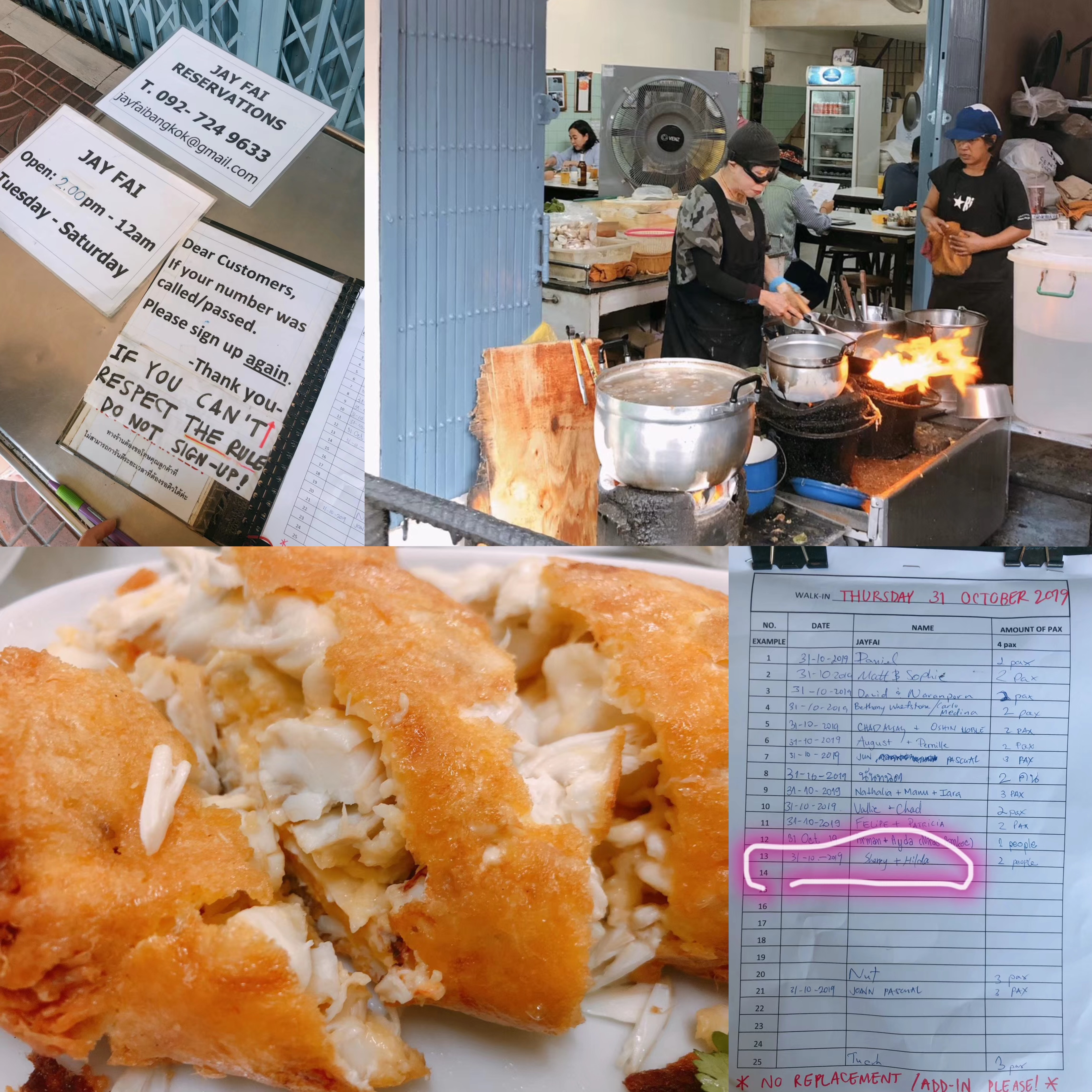16:12 为了吃上餐厅jayfai,俩人排队等待时先吃了五家其他餐厅