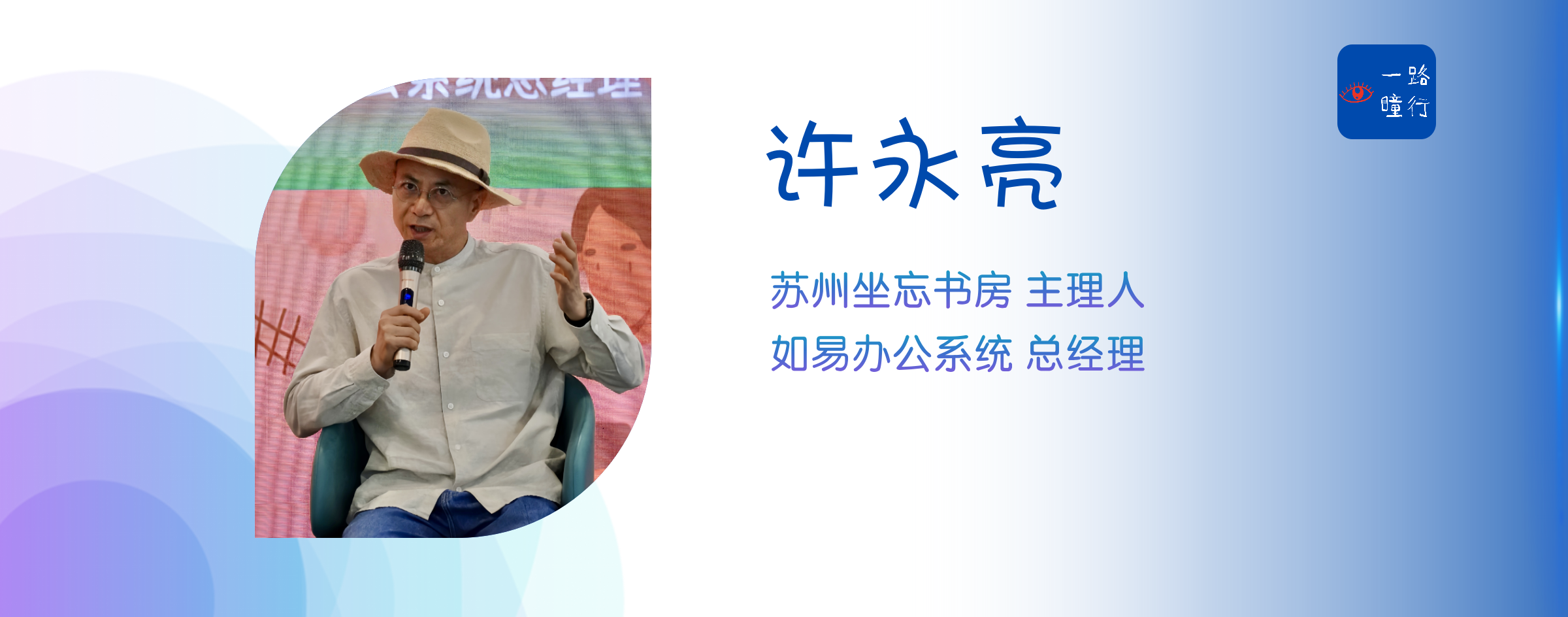 欢迎大家光临今天国庆前的一期特辑节目,今天我们的对话嘉宾是坐忘书房,同时也是如易办公设备租赁的主理人,许永亮许总,在上上期一路瞳行的节目中,我们在浩数的线下沙龙中与许总有过一次二十分钟的圆桌沙龙,当时许总对于品牌实际是个伪命题,创始人标签和企业品牌的关系的探讨让我印象深刻,可以搜索浩数投资视点的视频号去翻看许总的分享。于是在假期到来前,一路瞳行就想到探店一下许总的书房,为大家在假期的可去之处增加一个可选项,于是我们来到苏州的斜塘老街作客了坐忘书房,也同时邀请许总作客了本期的一路瞳行。