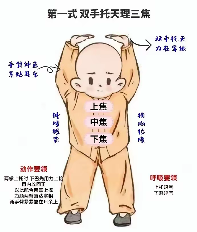 这次不墨迹,直接拆解八段锦第一式——“双手托天理三焦”!