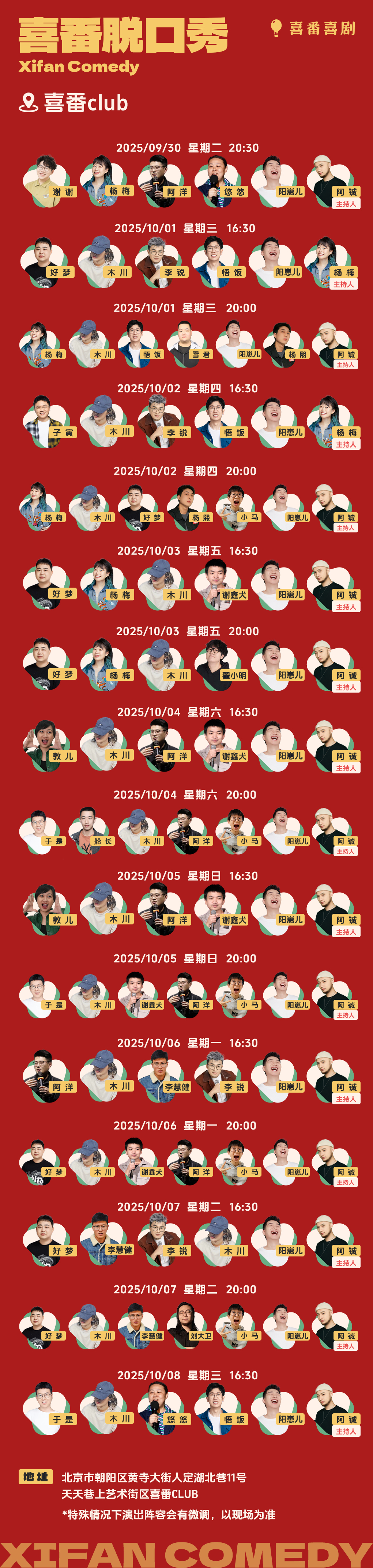 各大购票平台搜索“喜番喜剧脱口秀巡演季”即可购票