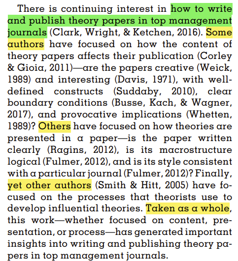Barney, J. B. (2018). Editor’s comments: Positioning a theory paper for publication. Academy of Management Review, 43(3), 345–348. doi.org jaybarney.org