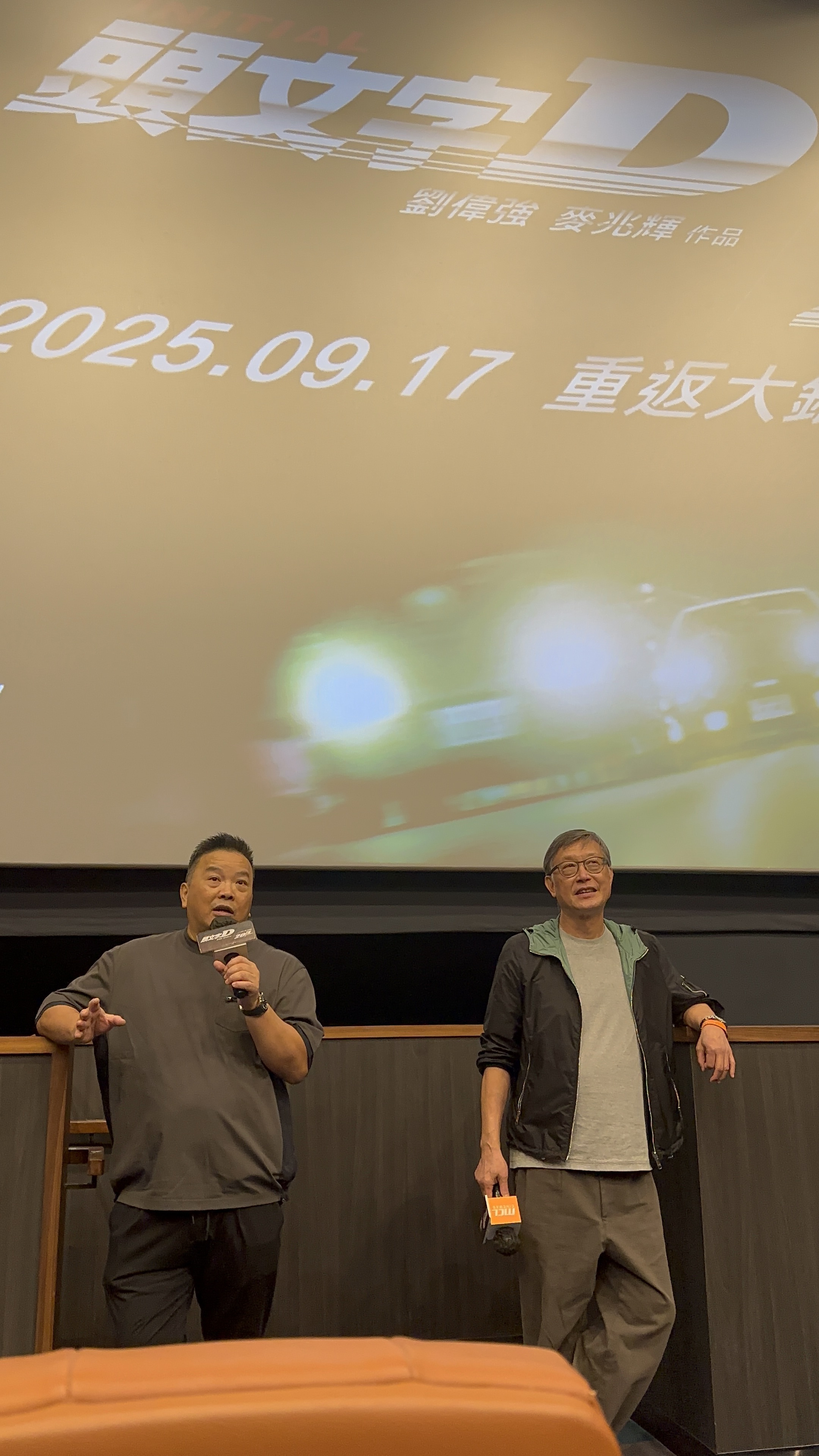 跟大家分享一下上周在香港观看《头文字D》4K修复版的感受,有机会在映后见到了两位导演刘伟强和麦兆辉。听他们聊了聊头文字D2的构想,以及没有开拍的原因。