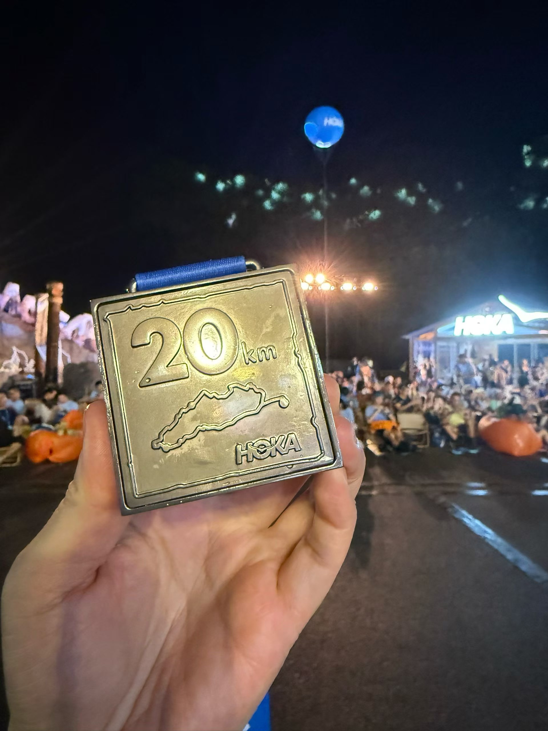 设计巧妙的奖牌,12公里和20公里可以组合在一起