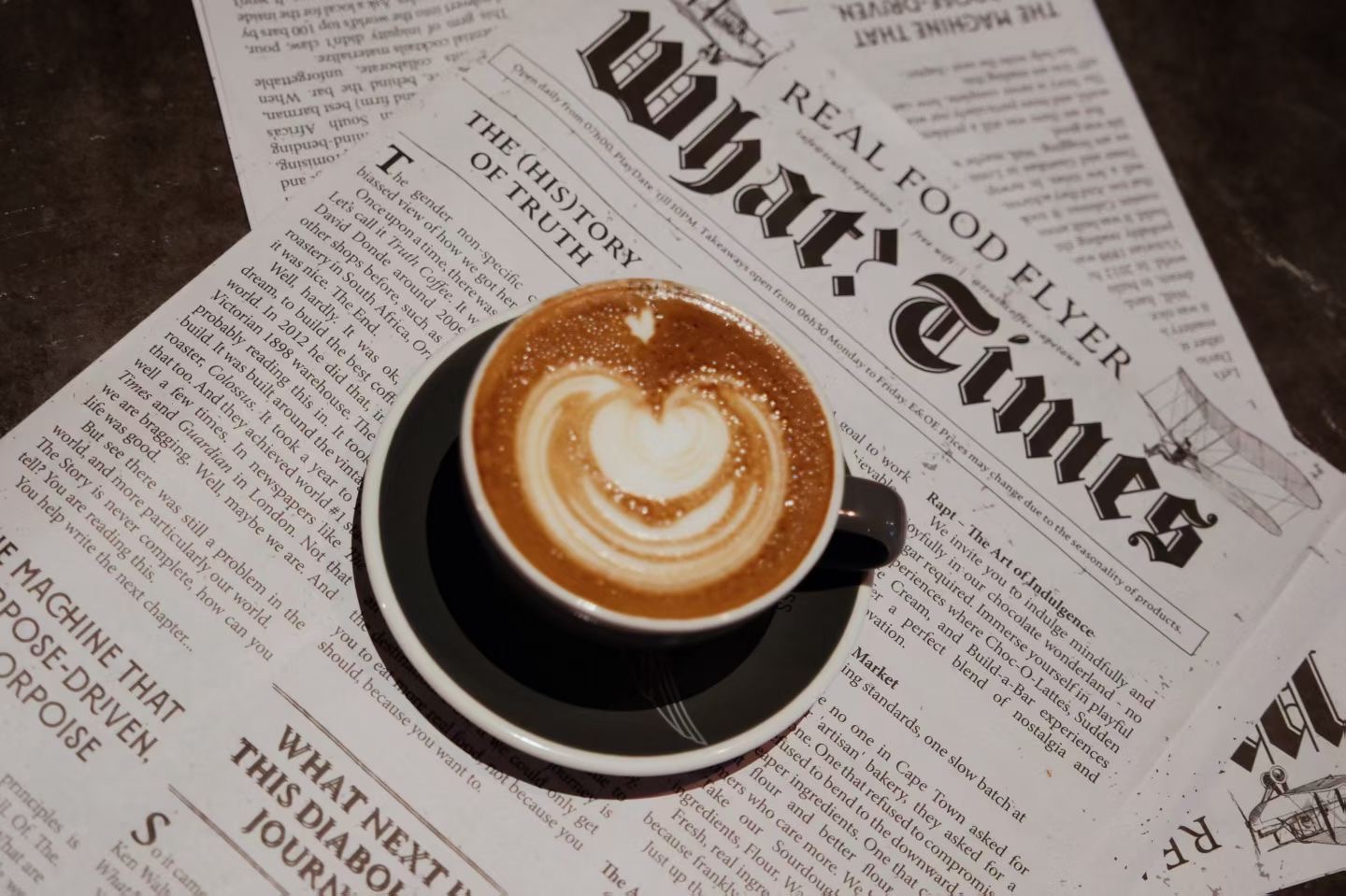 Truth Coffee,菜单是一份报纸