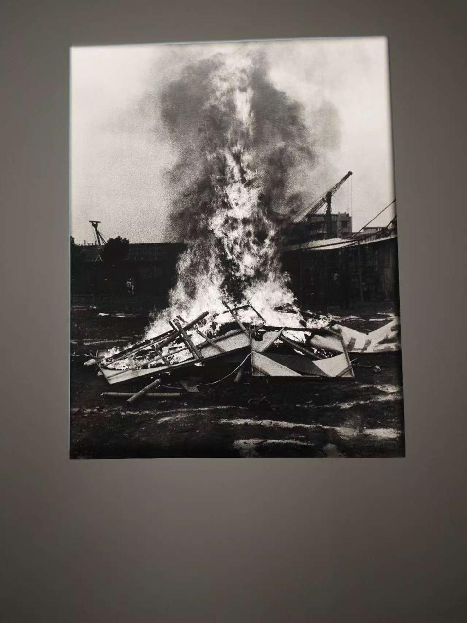 黄永砯的厦门达达时期烧作品的作品也是一种呼应:烧毁之前还专门裁切了一些25*25厘米的作品,烧毁也有照片