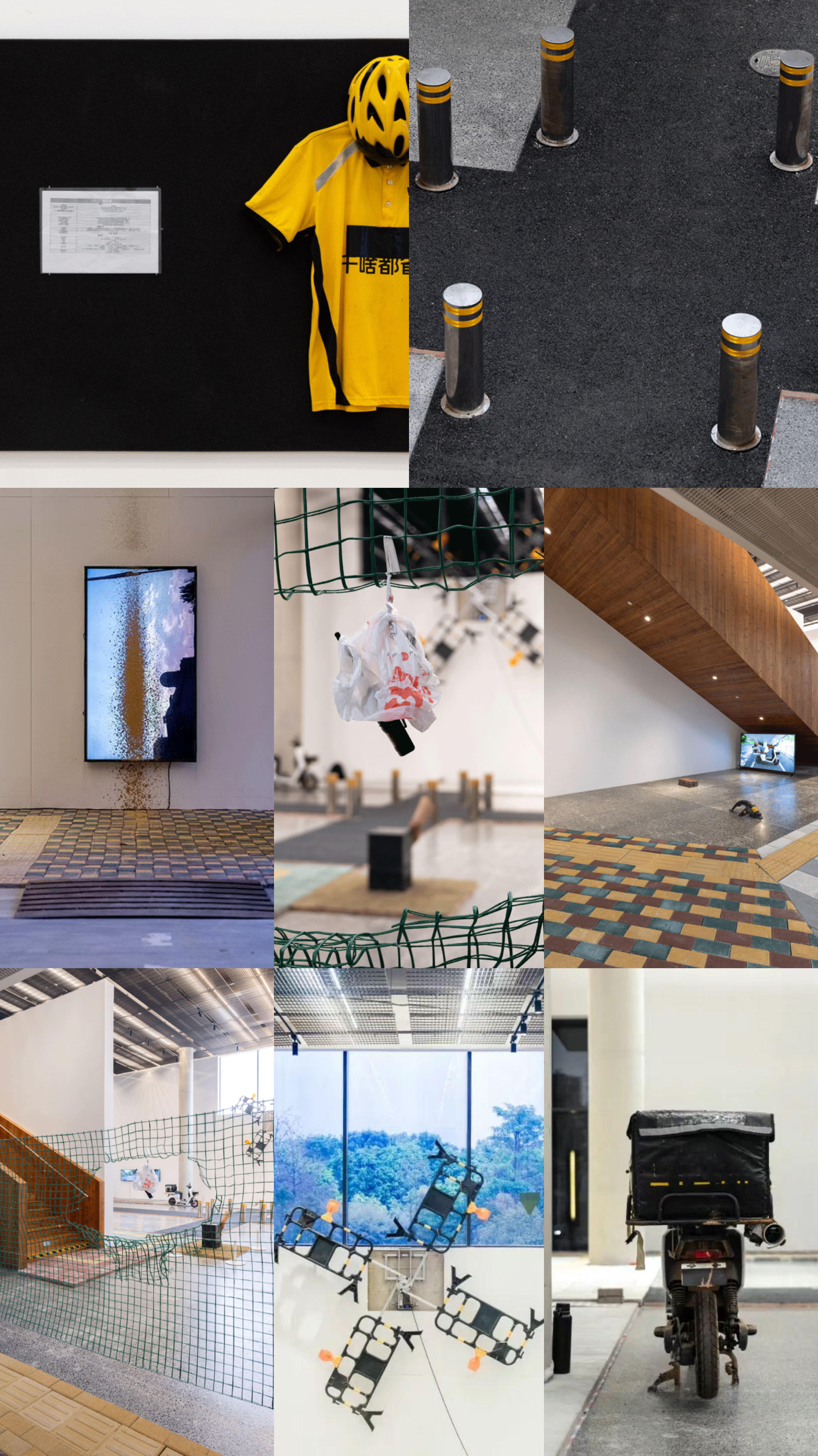 《老婆去创业了》是李燎2023年在深圳坪山美术馆举办的个展。这件作品的起因非常生活化:他的妻子决定辞职创业,这使得家庭失去了稳定的收入来源,而每月仍需支付房贷。面对这种经济压力和人生节奏的变动,李燎决定亲身投入体力劳动,他应聘成为美团外卖的专送骑手,目标是赚取家里一个月的房贷——约25,700元。