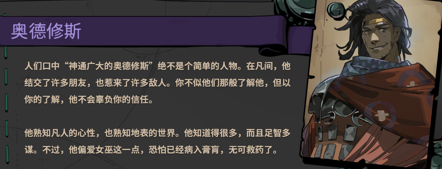 本期节目继续上一期的话题,讲述《哈迪斯2》中那些NPC与怪物的故事。上一期主要讲了奥林匹斯十二神,算是这个系列的总纲,而本期,我们要以奥德修斯为线索,讲述《哈迪斯2》那些与奥德修斯有关的人物。