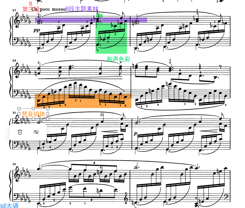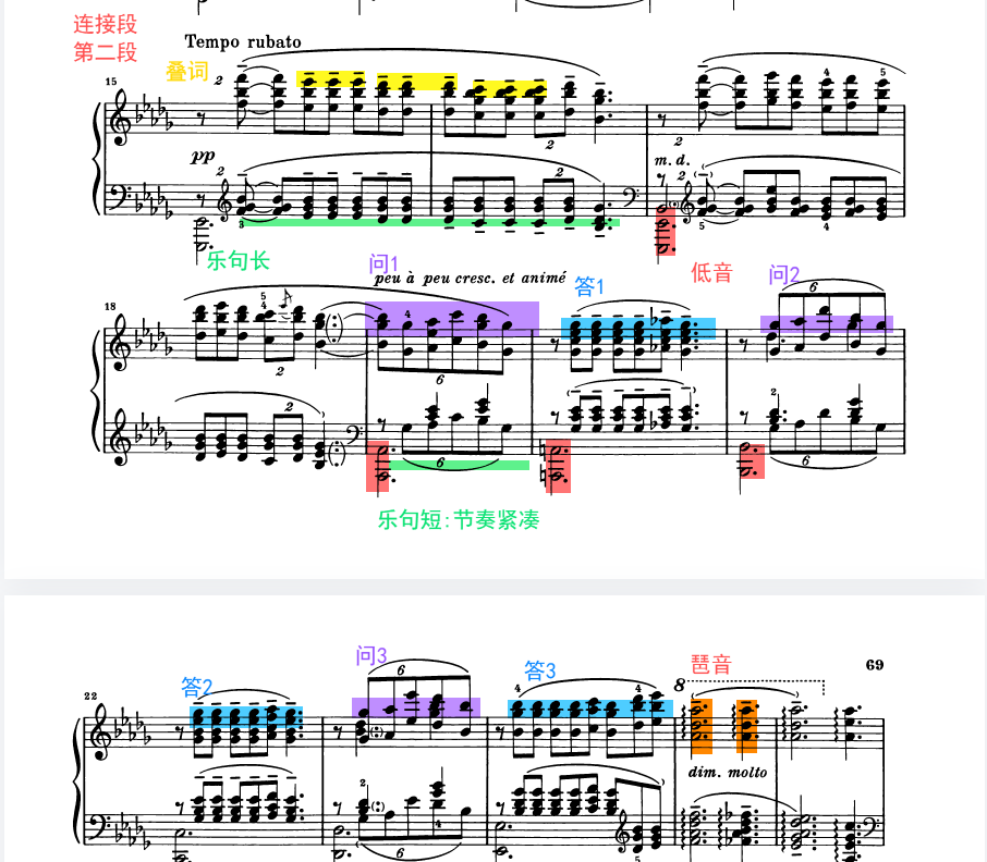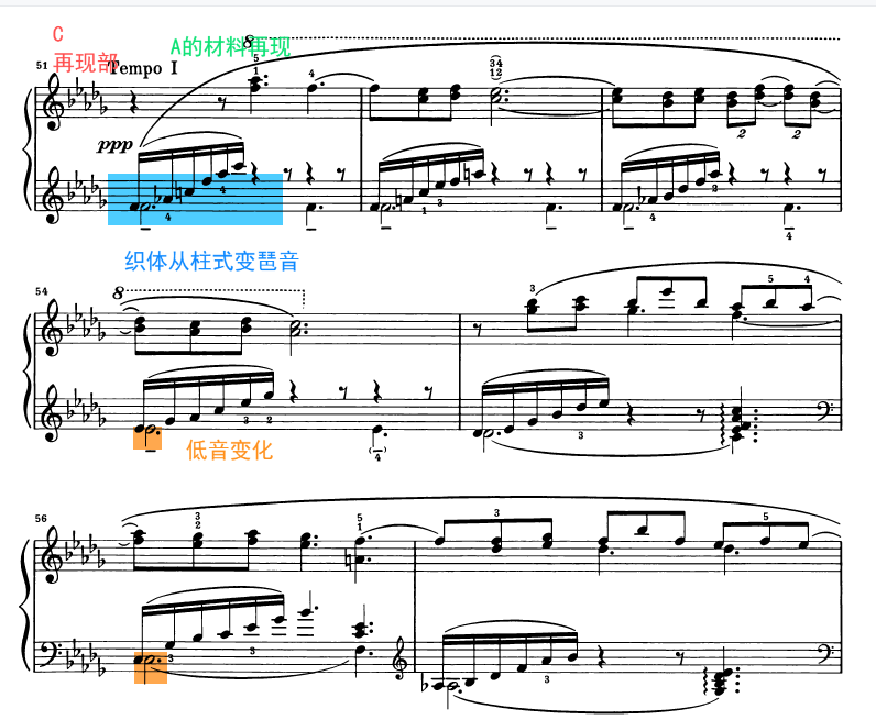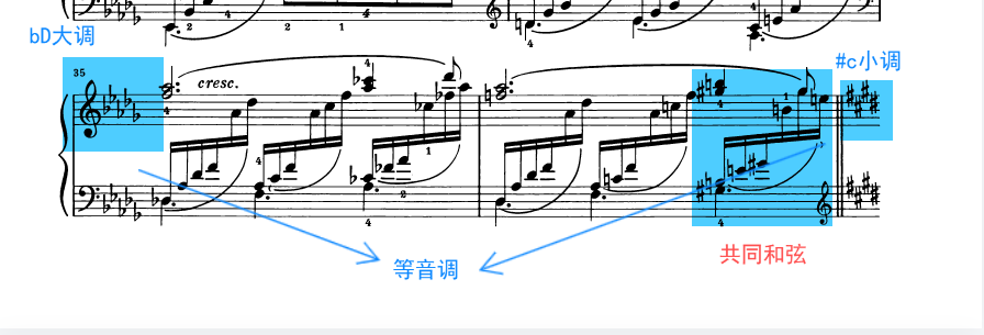 和声、琶音织体、等音调、转调、同样素材使用