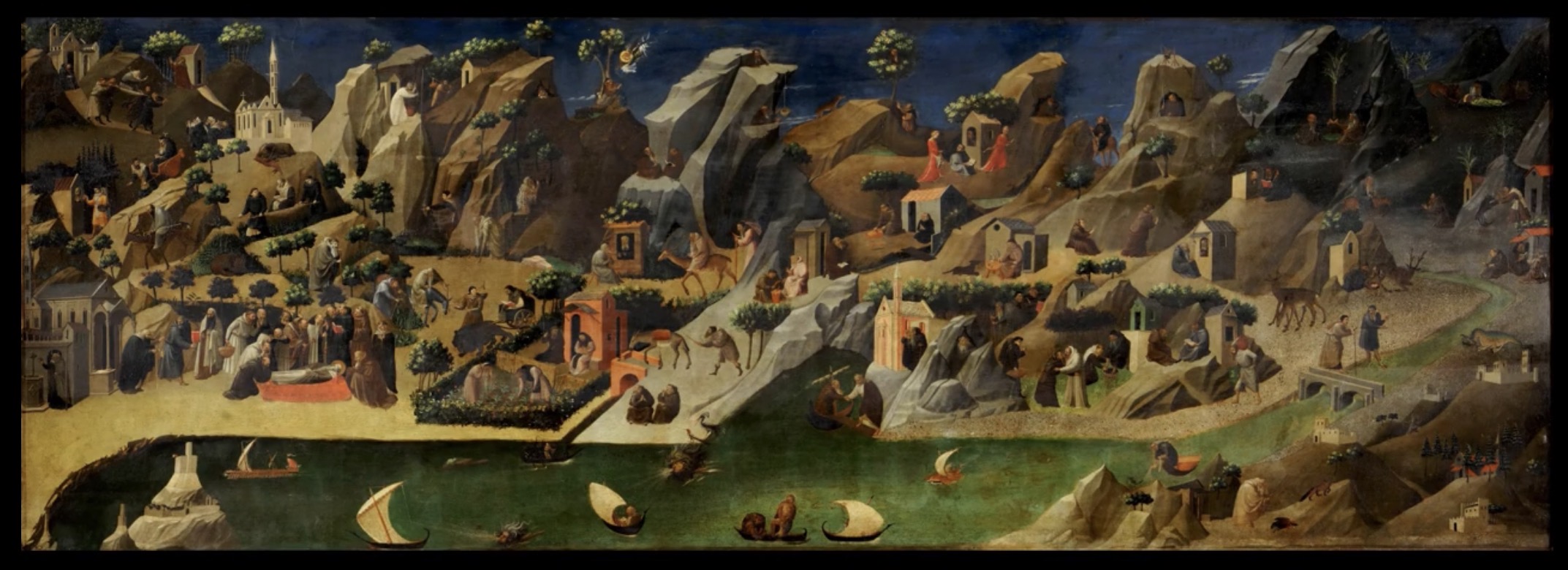 安杰利科早年作品《TEBAIDE》底比斯的修士生活。带有晚期哥特风格。有点像我们的清明上河图。