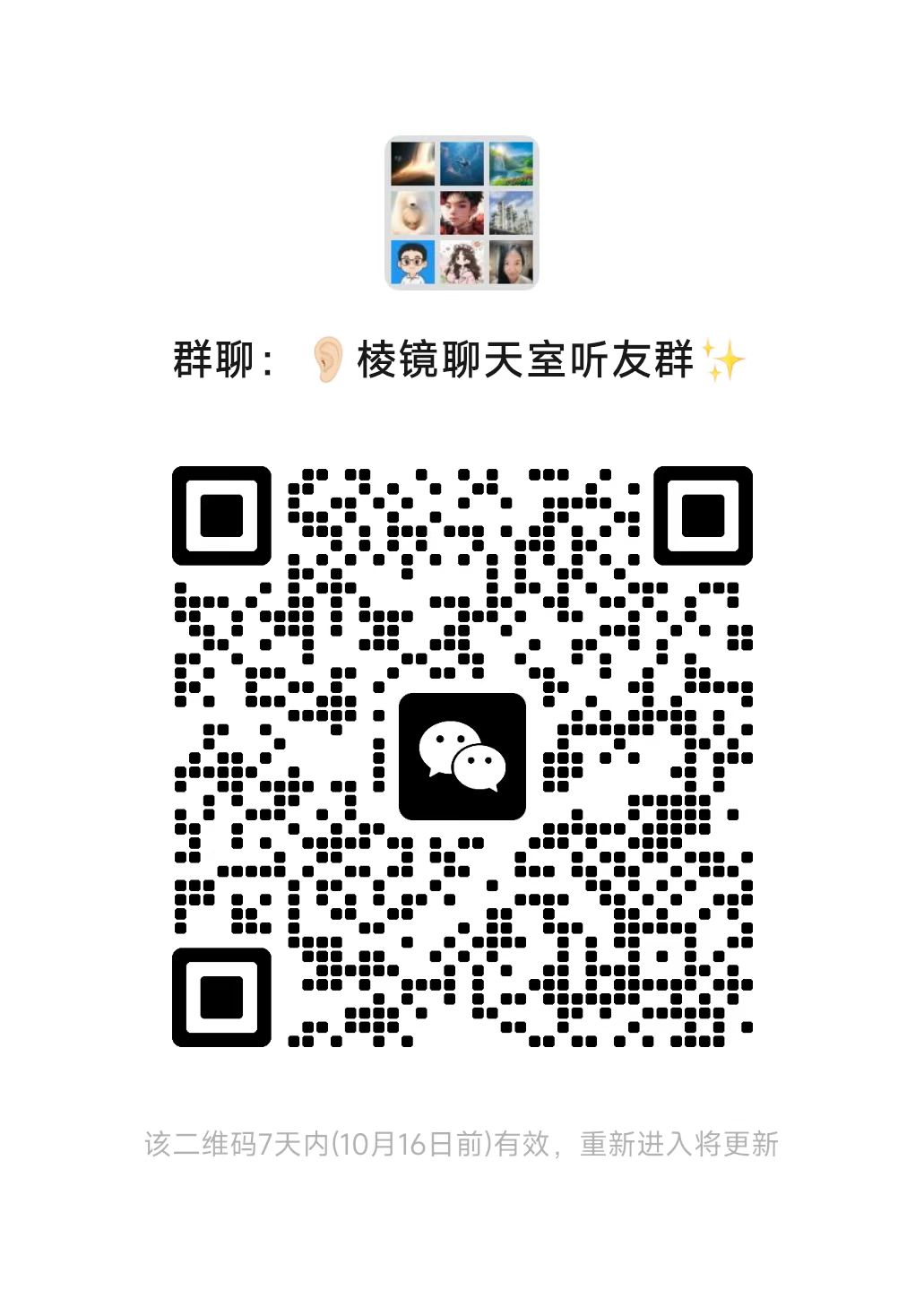 棱镜聊天室听友群欢迎大家加入,同时我们也在招募访谈嘉宾,只要你对ai感兴趣都可以来我们棱镜聊天室聊聊天。