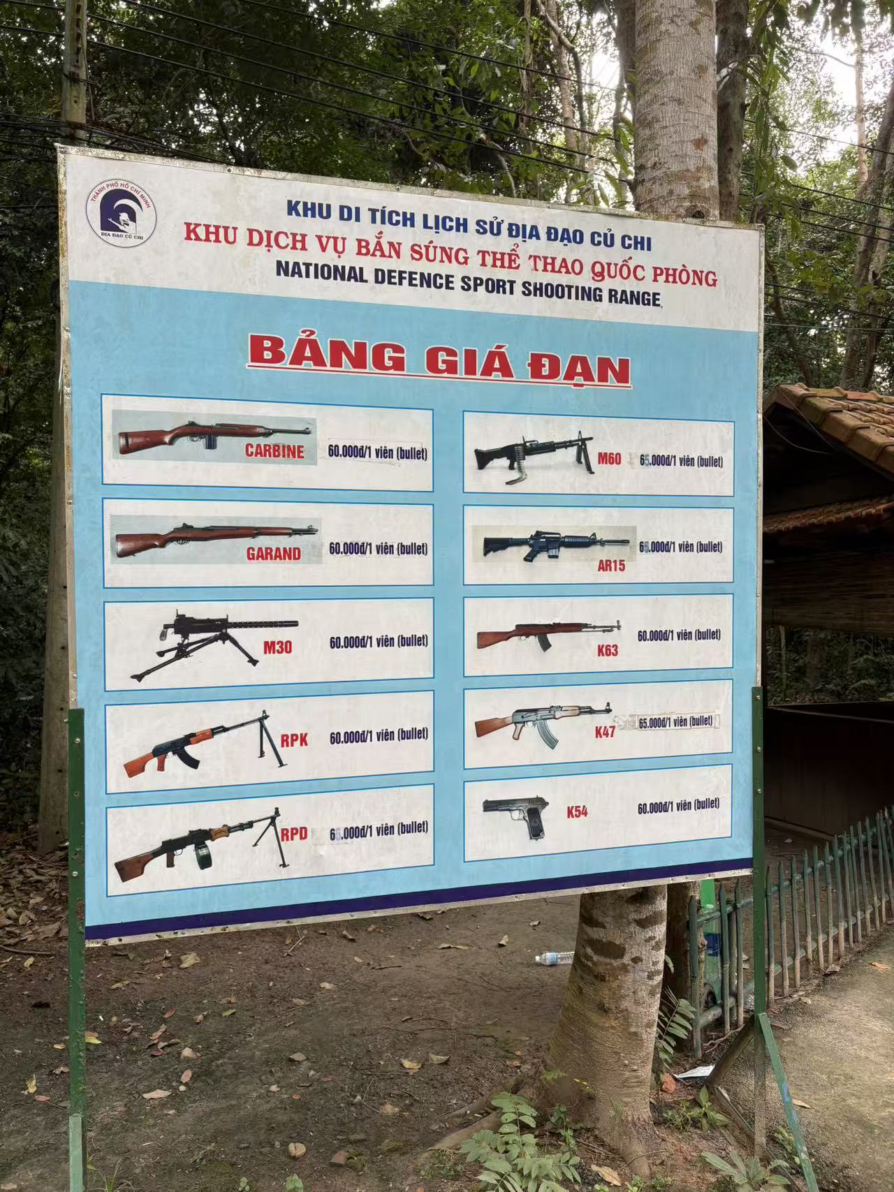古芝地道有付费的射击场,一发子弹大约16元人民币,有各种枪型可以挑选。