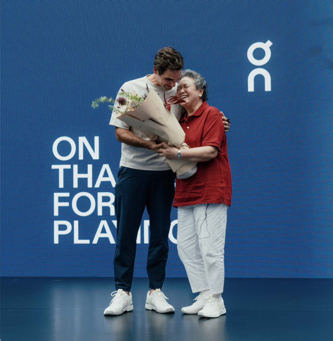 ■图 /2025 年 On 昂跑「致敬每一场」活动中,费德勒为刘运智献上花束