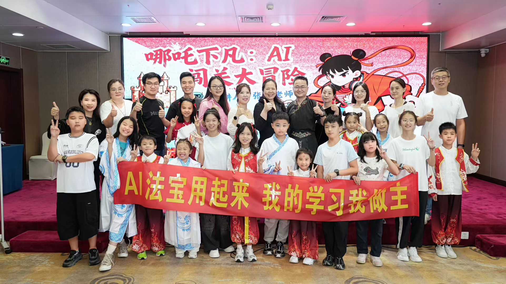 如今,他将AI技术与家庭教育结合,在郑州联合创办教育公司,研发出线下课程《哪吒下凡——AI闯关大冒险》,专为小学生到初中生设计,通过剧本杀、项目制、任务升级等形式,让孩子在玩中掌握AI协作的能力与正确使用方法。