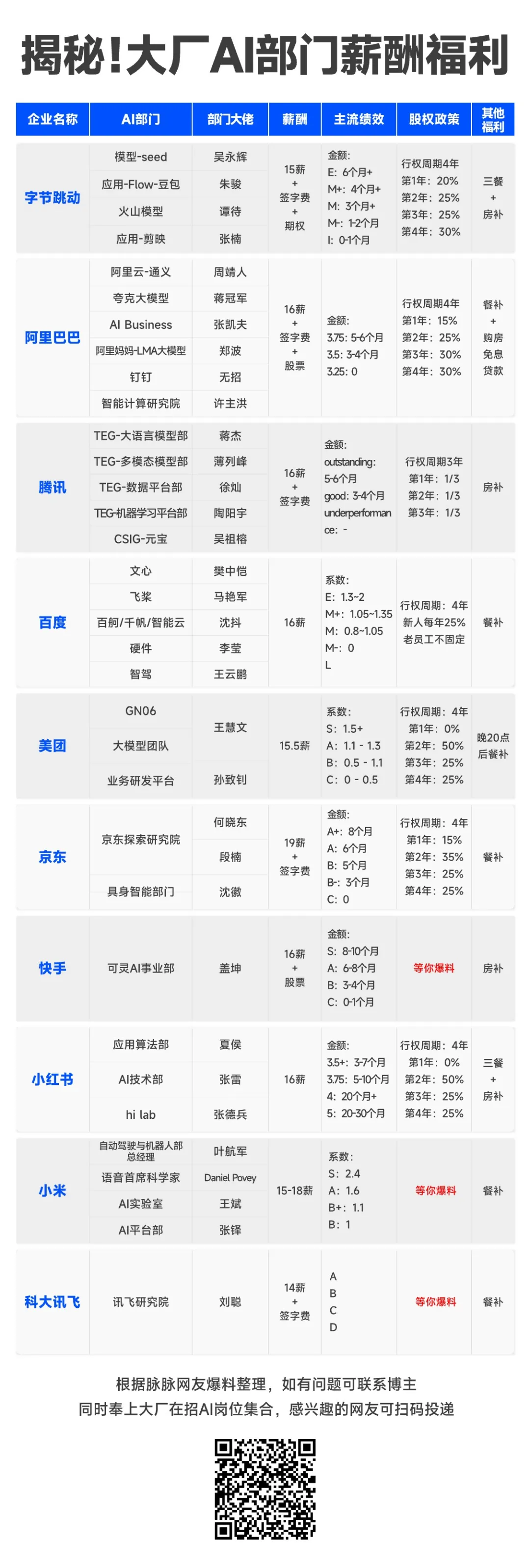最近有脉友脉友整理了国内一些大厂 AI 部门的薪酬福利,薪资高、福利好、发股票送期权都是基操,甚至还有“签字费”!