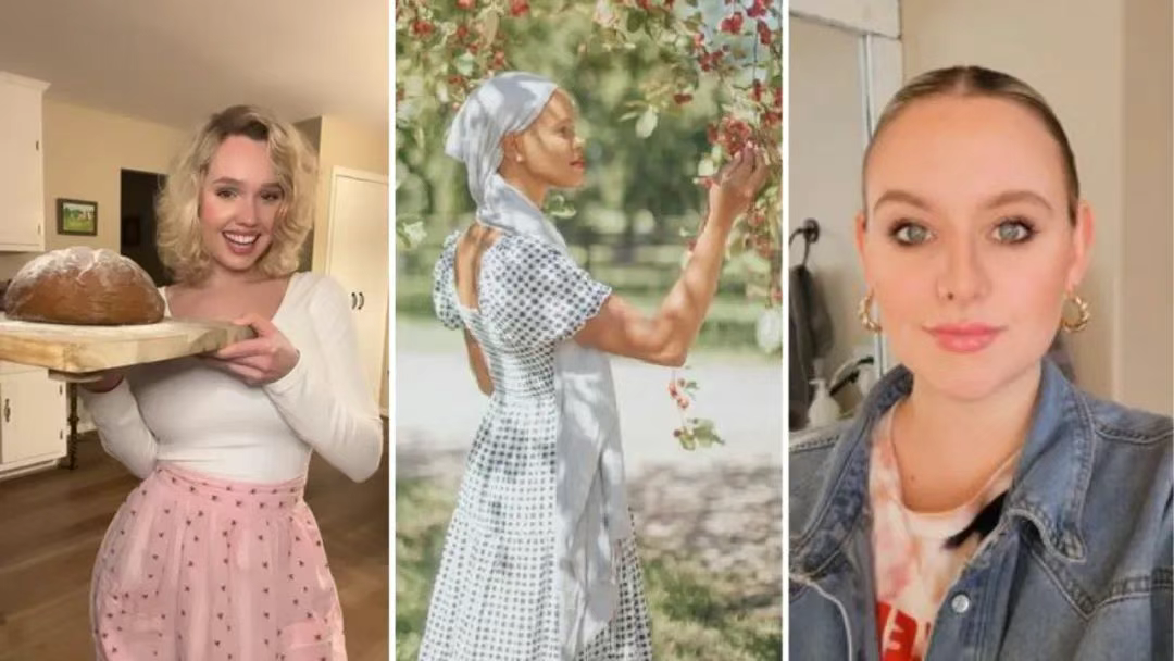 Estee Williams (左)和Hannahlee Yoder (中)都是tradwives,活跃于tiktok平台。