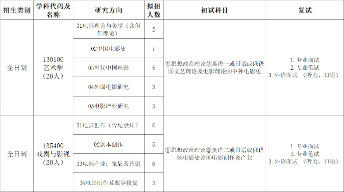 招生单位:中国电影艺术研究中心学校地址:北京市海淀区文慧园路3号