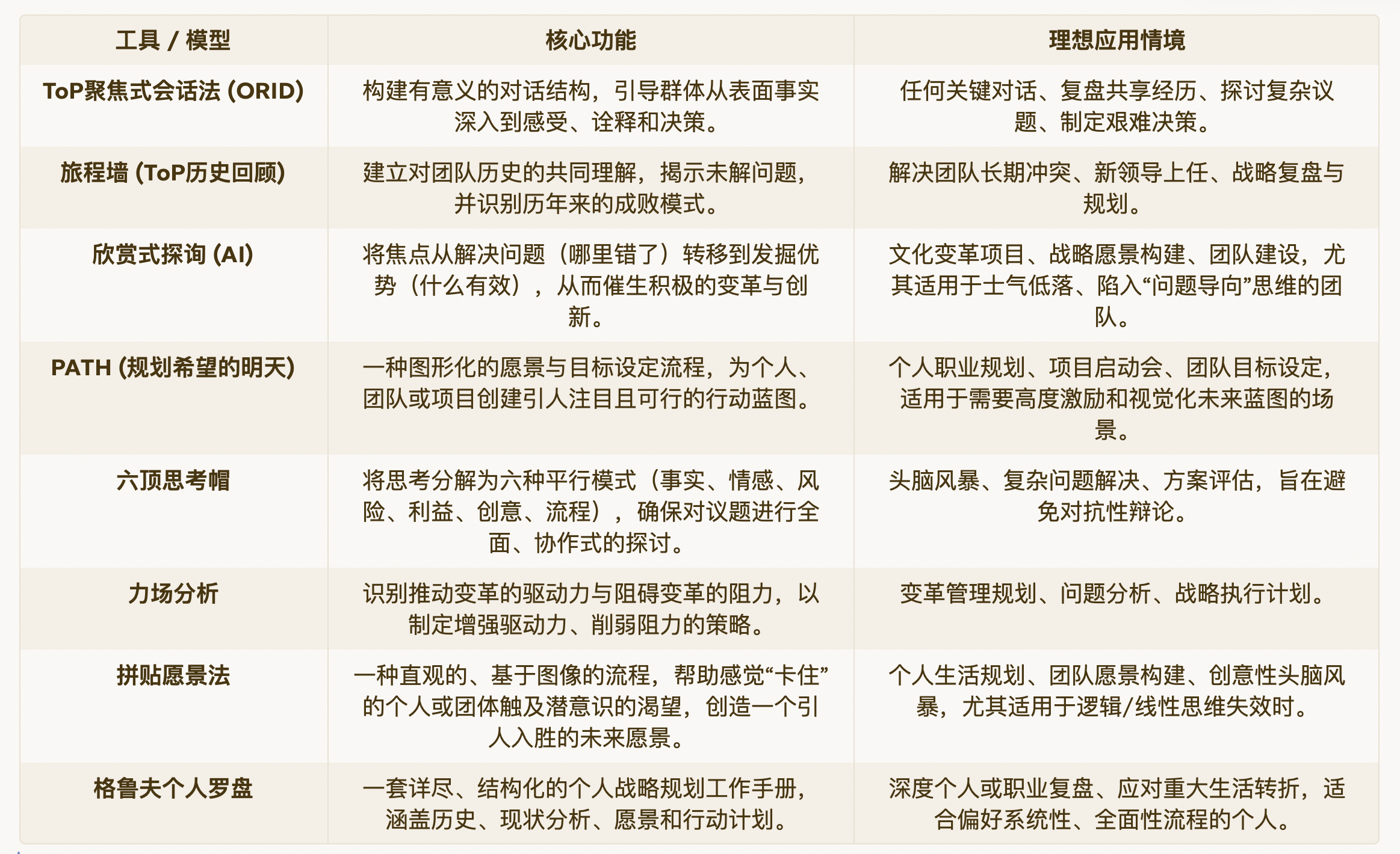 - 应用建议:在进行职业规划或面临重大人生转折时,尝试使用**“拼贴愿景法”或PATH模型**等工具,来清晰地描绘你的未来并制定行动路径。