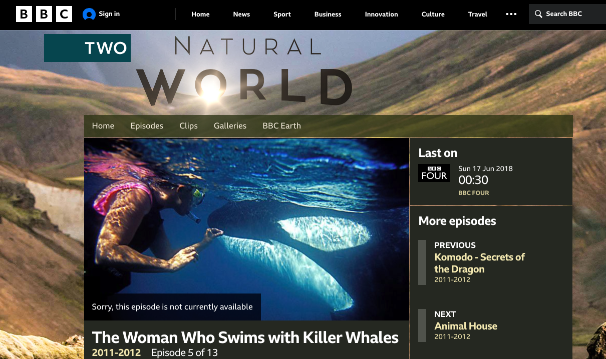 BBC纪录片《与虎鲸同游的女人》The Woman Who Swims with Killer Whales(www.acfun.cn)