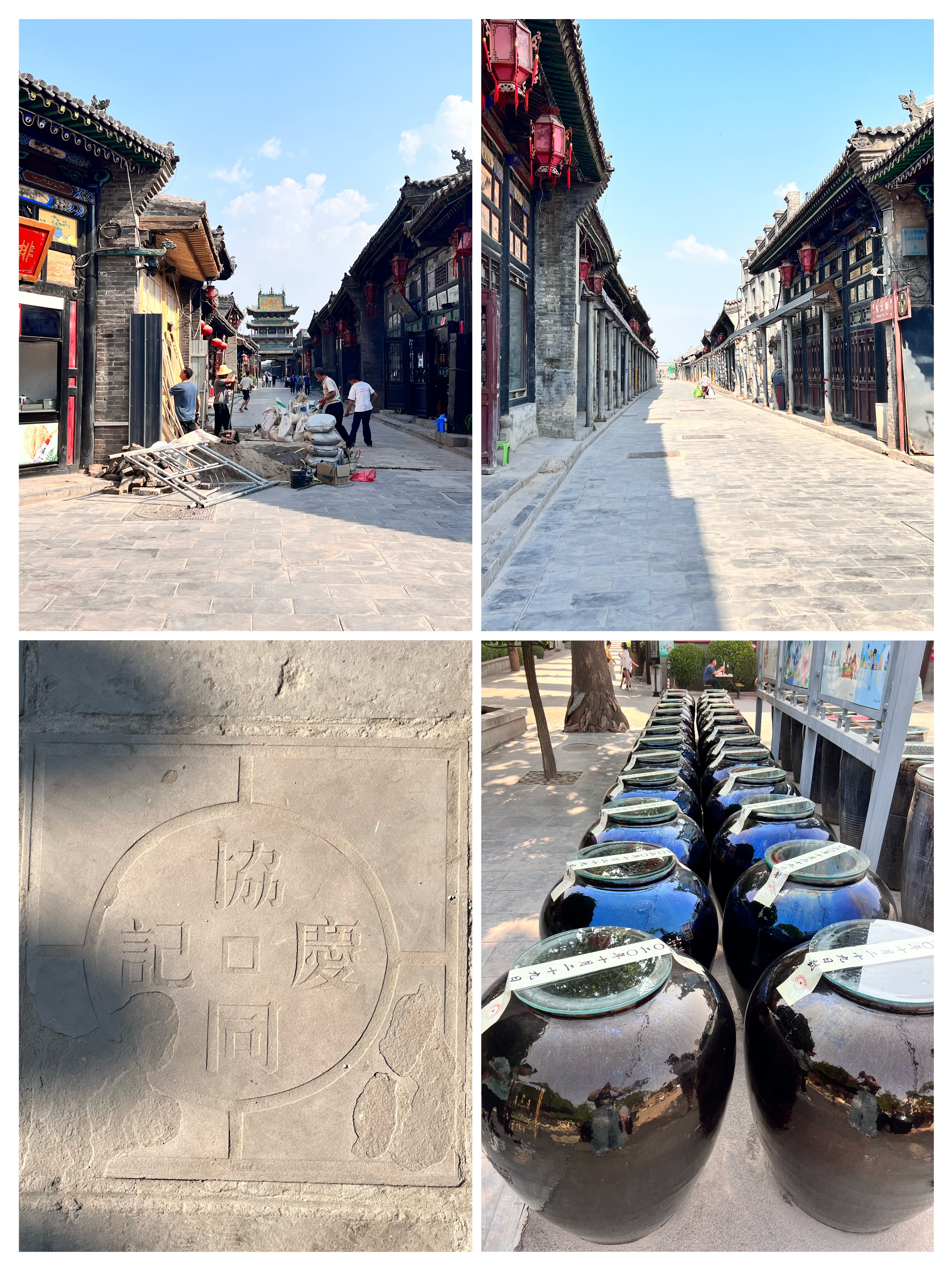• 平遥古城:2022年旅游业萧条,4点后禁入,主路宽阔可通车,半数区域在修葺,协同庆钱庄地下钱库规模大,地面砖为铜钱造型(15:01-18:10)