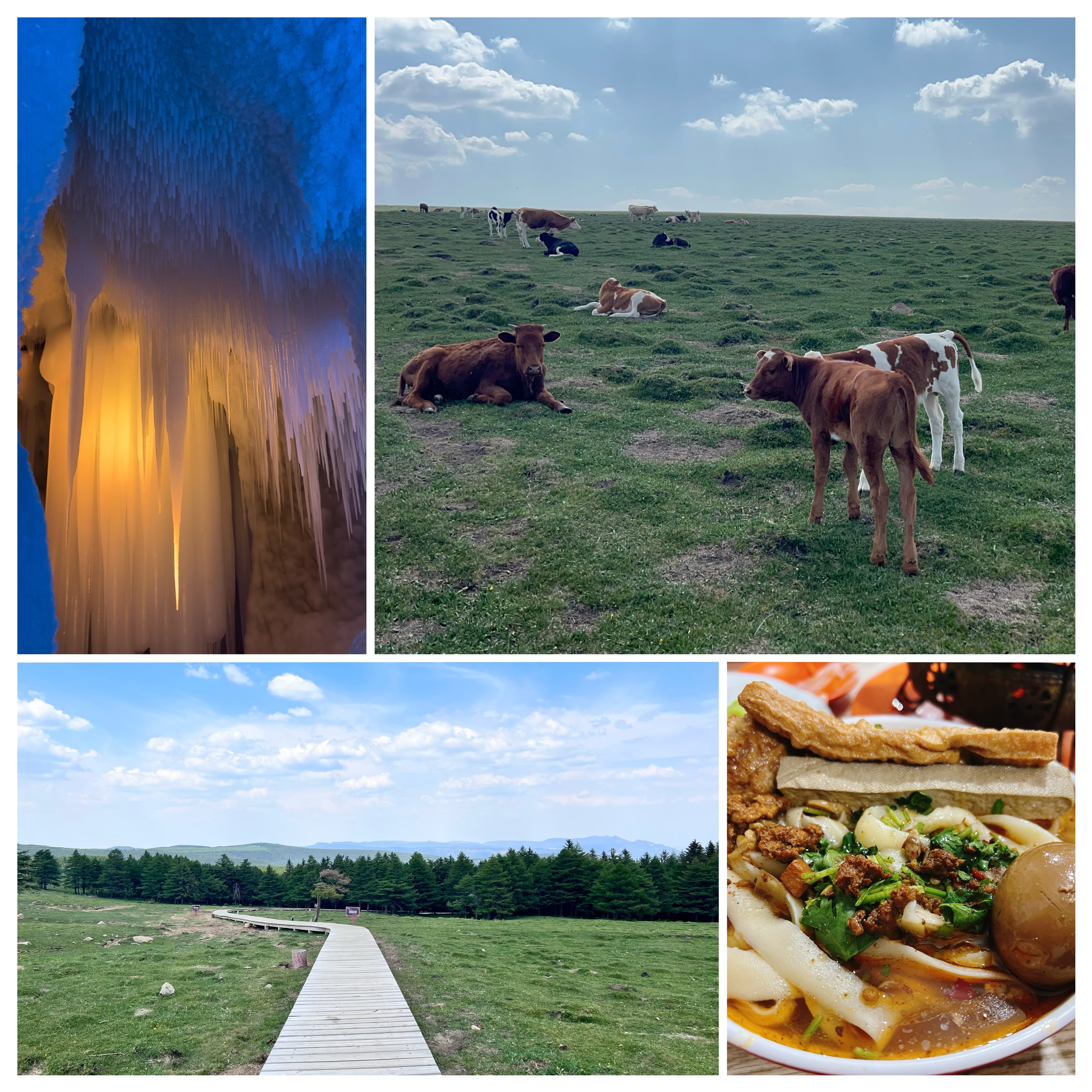 • 芦芽山万年冰洞:室外30℃,洞内需租军大衣,地下十几米木梯积冰雪,灯光下冰柱如冰雪世界(22:41-26:00)