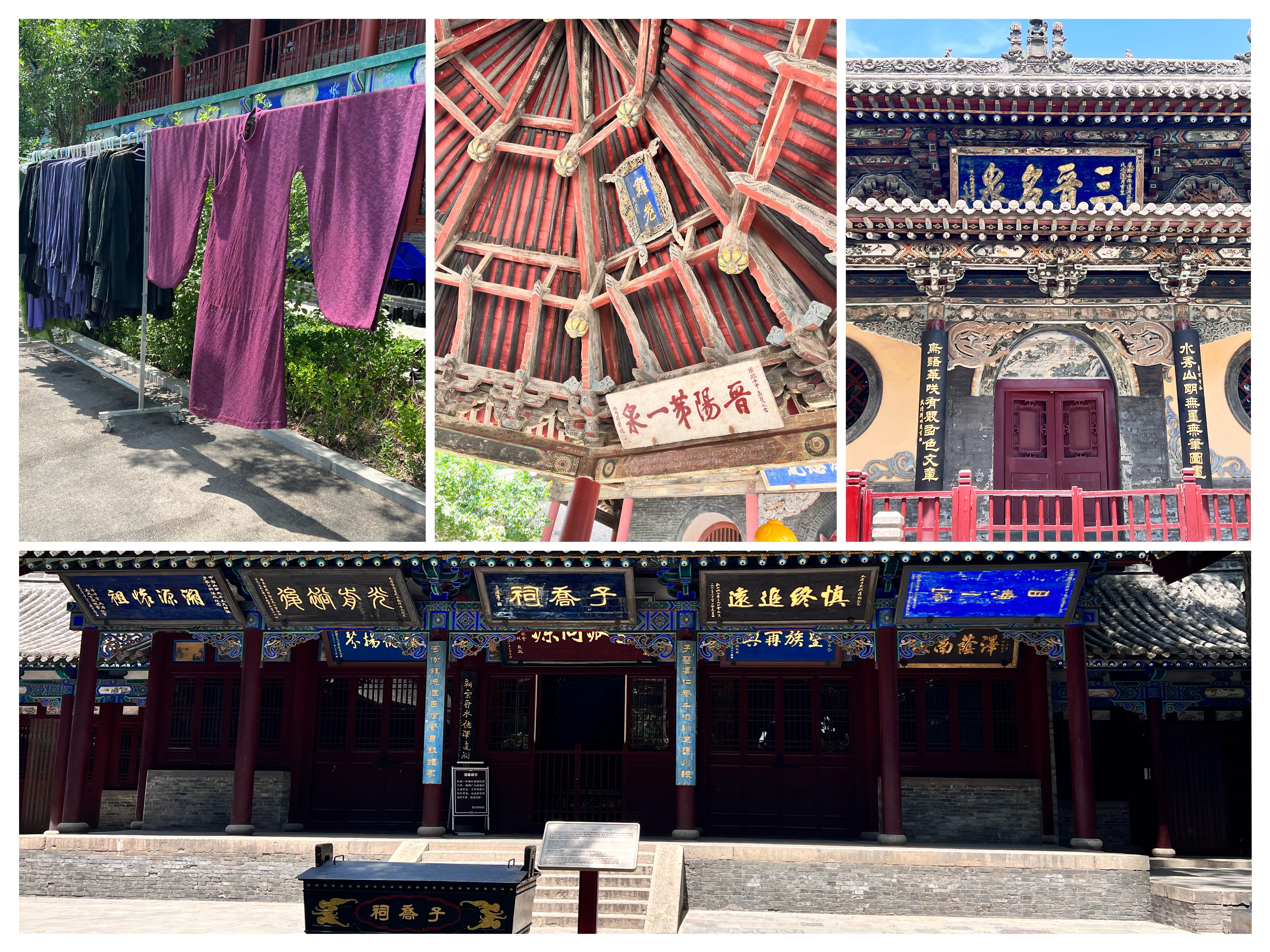 • 关键事件1:晋祠外意外看到《满江红》剧组晾晒的道具服装,群演服装薄如蝉翼,主角服装与盔甲质感突出(04:10-06:20)