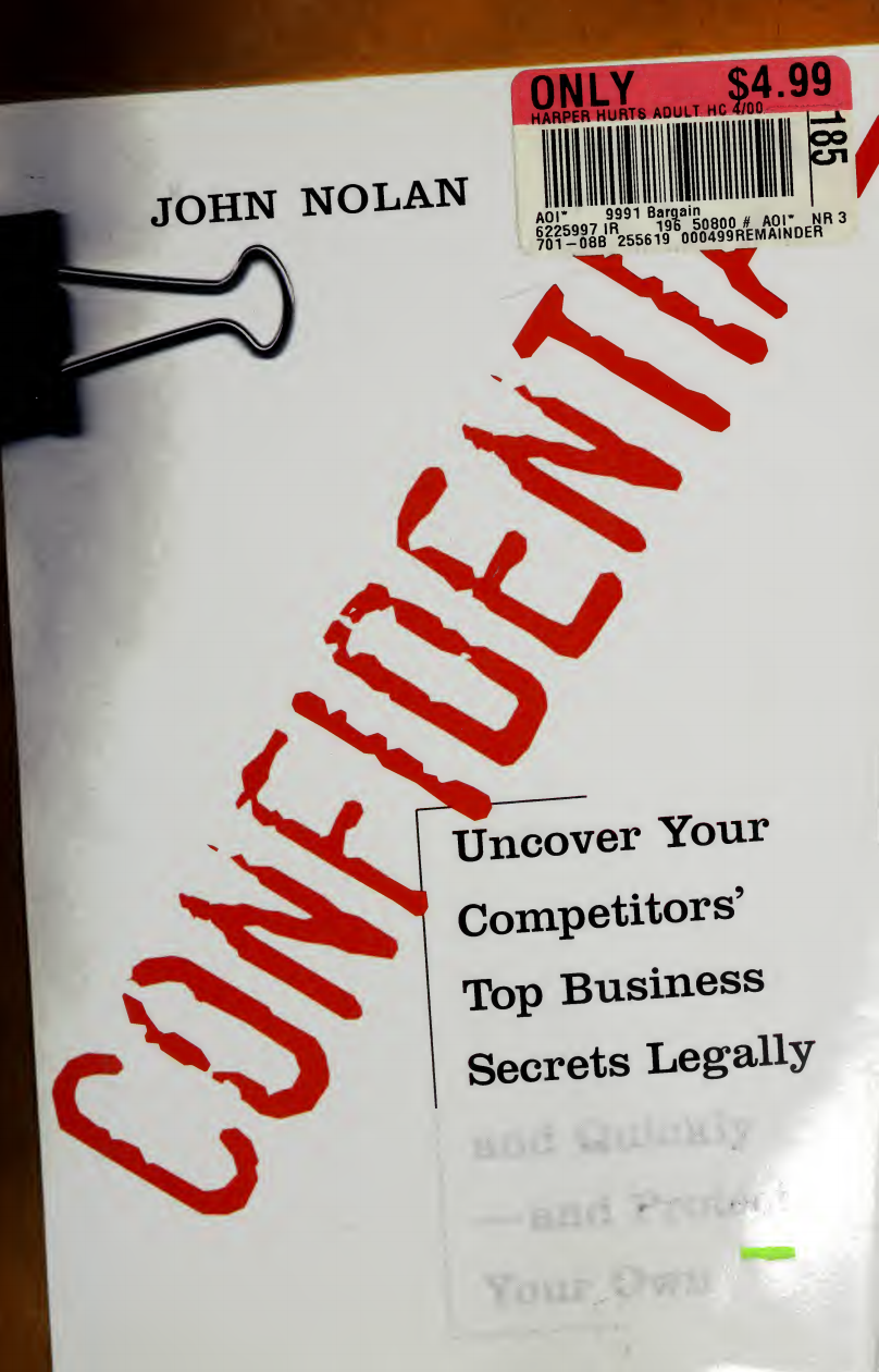 这是约翰·诺兰(John Nolan)的著作《机密:合法、快速地揭示竞争对手的商业秘密——并保护你自己的秘密》(Confidential: Uncover Your Competitors' Top Business Secrets Legally and Quickly - and Protect Your Own)。