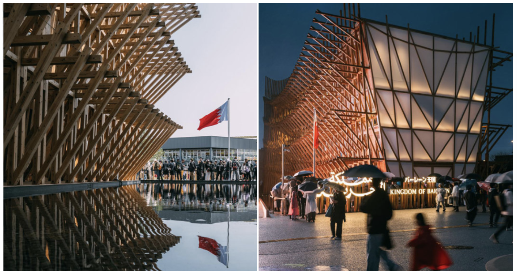 👆 巴林王国馆的灵感来自阿拉伯三角帆船dhow,由建筑师Lina Ghotmeh设计。 Photo credit: lovin.co; Dezeen)