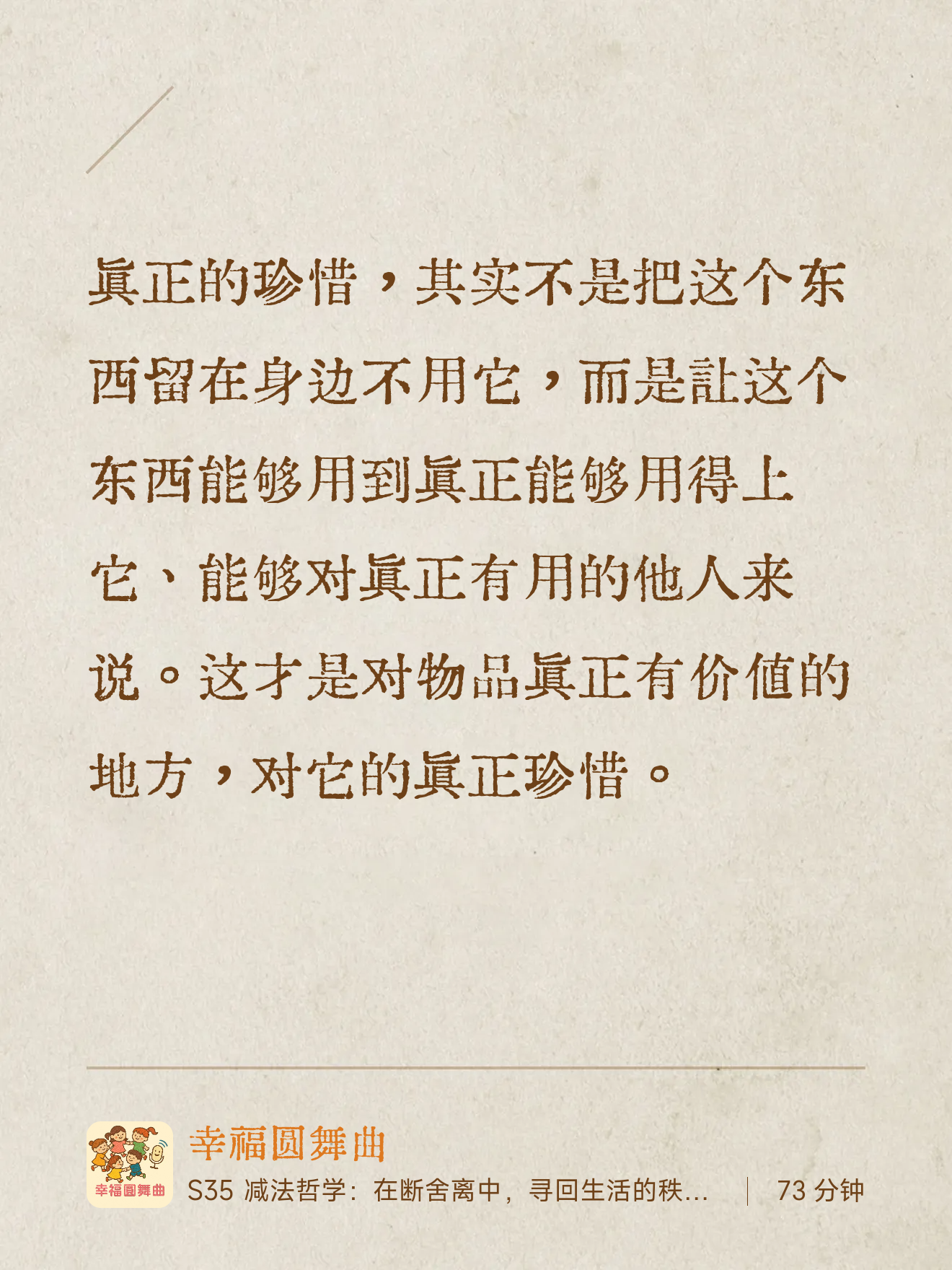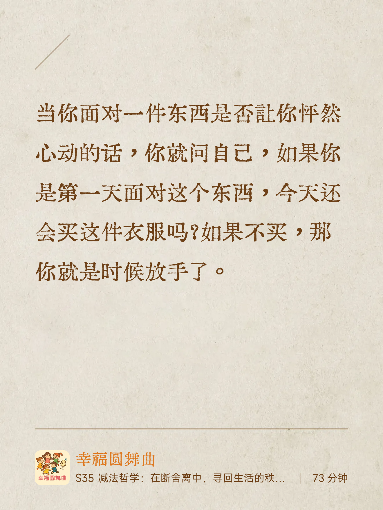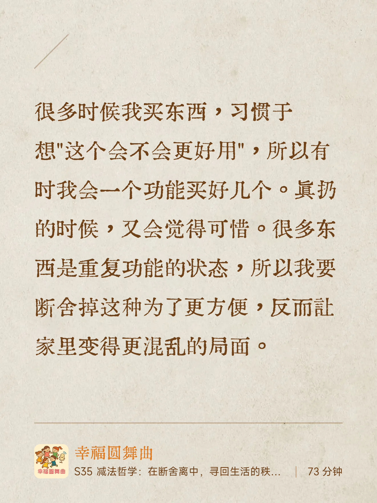 现在,就给你一个最简单的小提示:请在收听时,留意身边那件“闲置已久、每次看到都感觉有点负担”的物品。节目结束后,试着感谢它的陪伴,然后从容地放手。