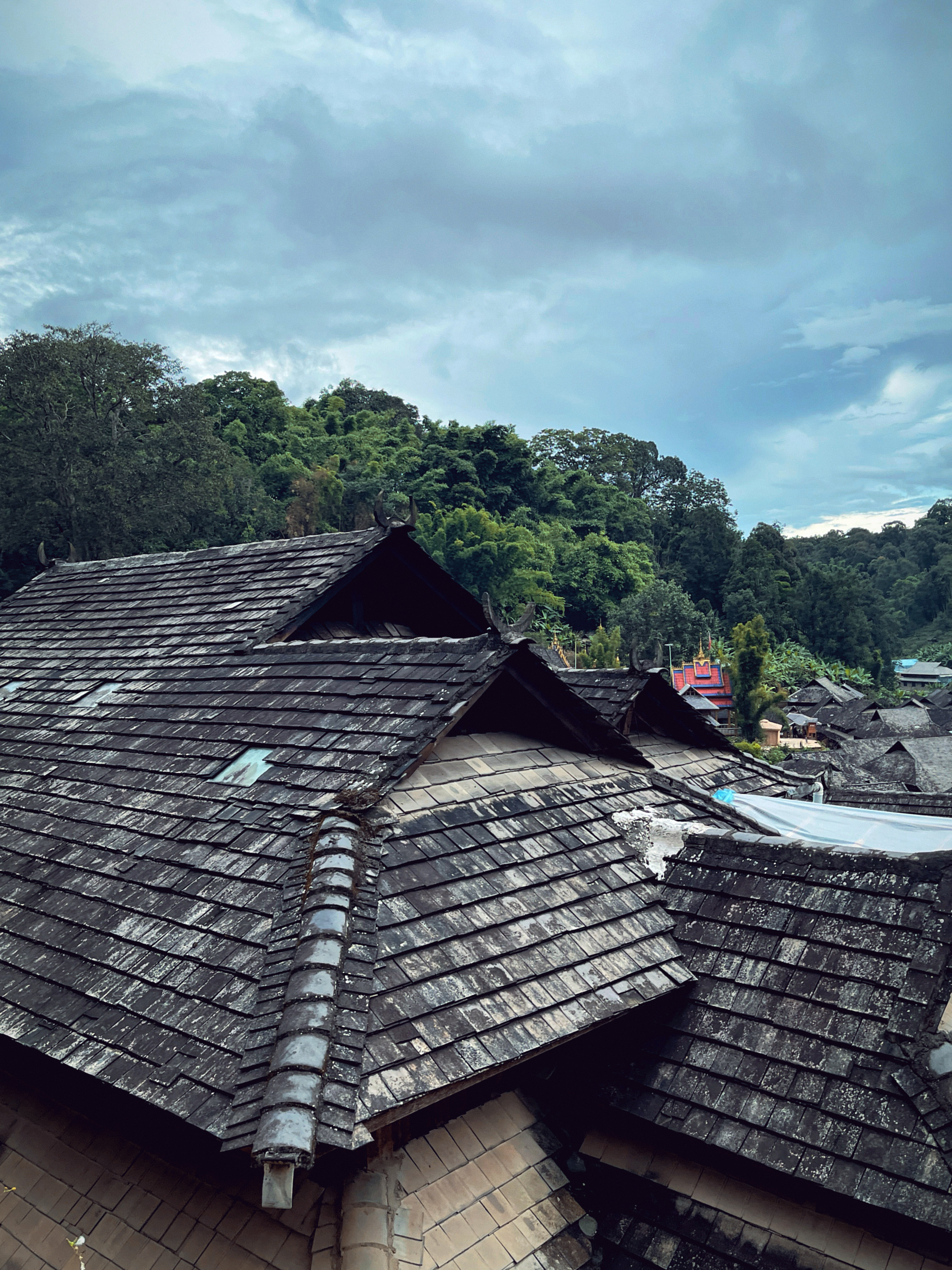 >翁基古寨民居屋顶的装饰:大叶茶「一芽两叶」