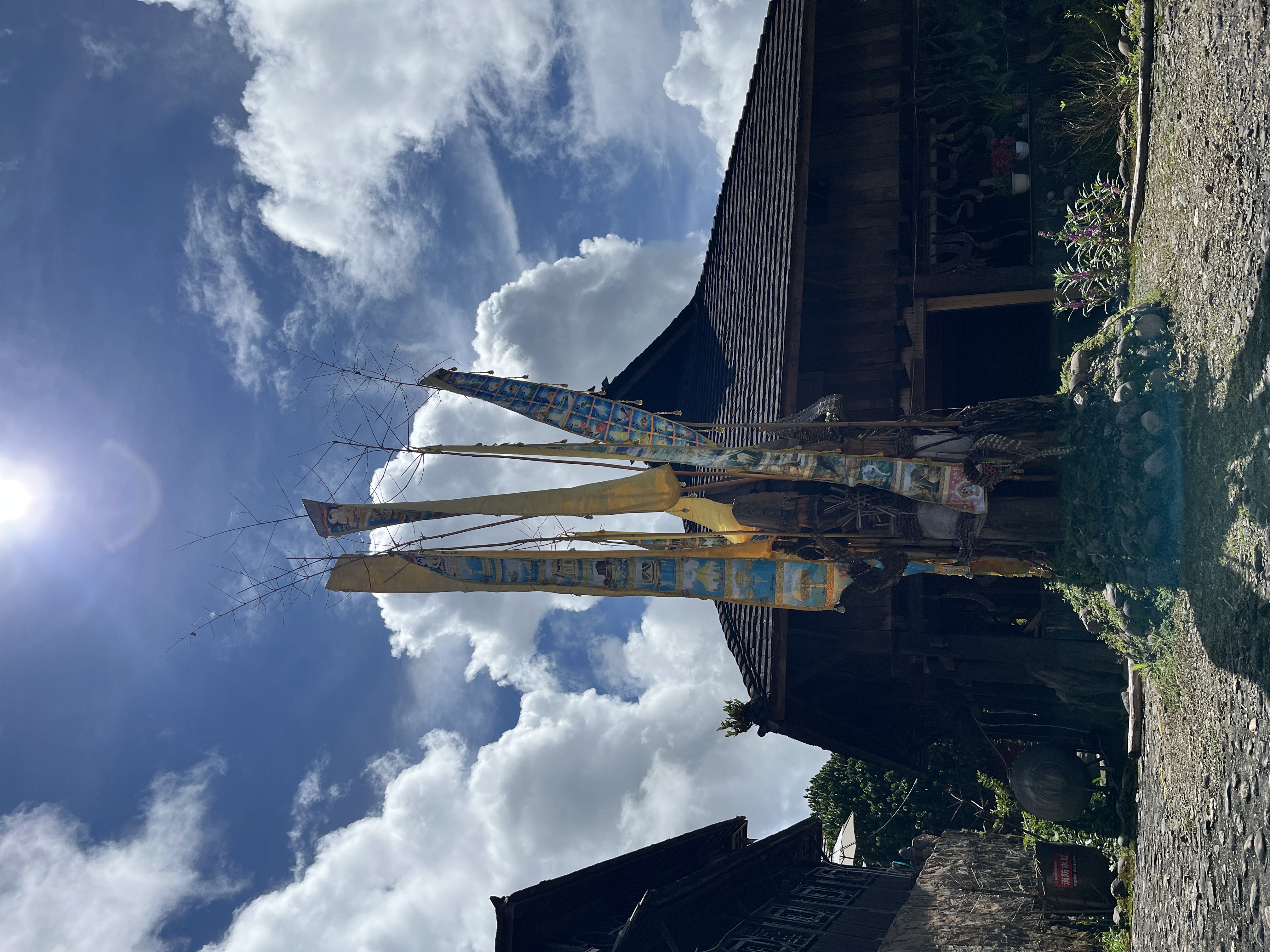 >糯干古寨的屋顶装饰:黄牛角