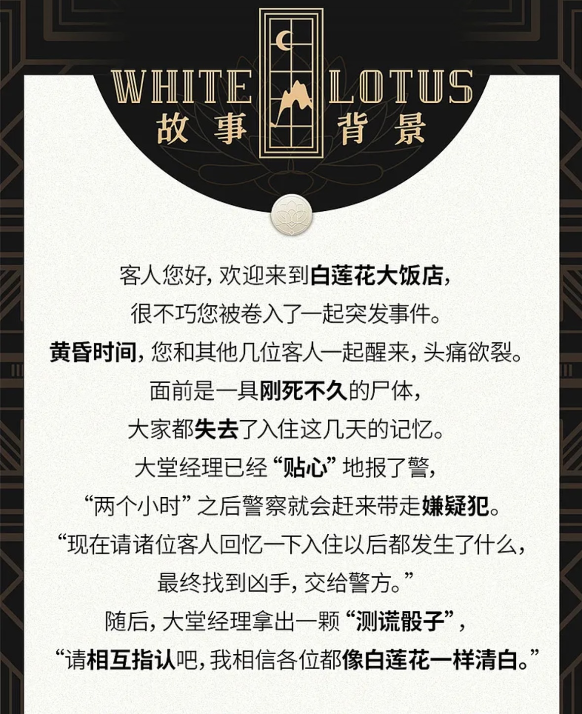 如果你厌倦了“积分胜负”,渴望在游戏中真正与人联结、激发创意、享受即兴讲述的快乐,那么《白莲花大饭店》或许正是你等待的那款游戏。它不是桌游,它是一种新的社交语言。