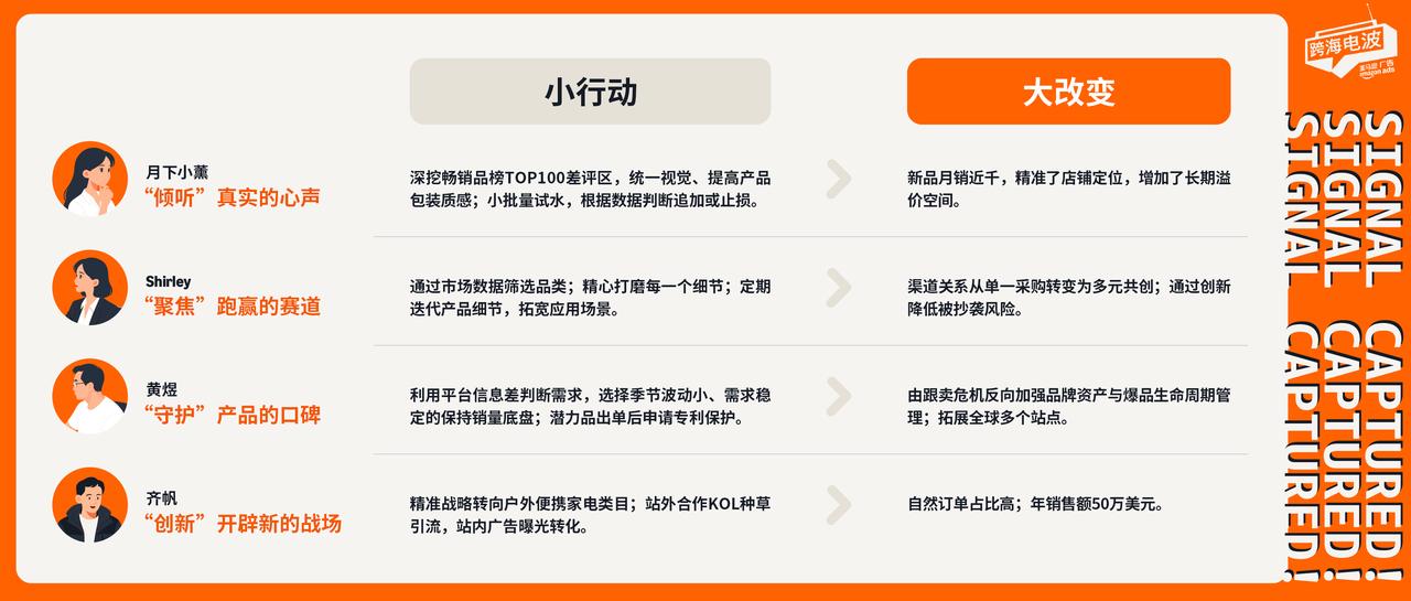 「小行动带来大改变」系列首期播客,我们邀请了4位不同卖家,通过对过往实战经验的深度复盘,探究面对不同困境他们所采取的突围方式。在这场对话中你将听到,4位卖家关于运营策略及竞争的破局与思考:
