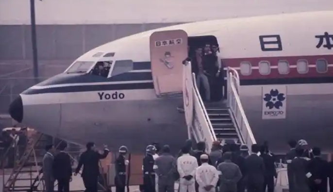 6 点 50 分,9 名劫机者分三批伪装成乘客,登上东京羽田飞往福冈的日航 351 次 “淀号” 波音 727 客机(载 7 名乘务员、122 名乘客)。7 点 33 分,飞机飞至富士山上空时,田宫高麿率成员突袭,大喊 “我们是赤军派,飞机被劫持”,用 “炸弹” 模型控制驾驶室、捆绑男乘客,要求飞往朝鲜平壤。机长石田真二以 “燃料不足” 为由,请求先降福冈板付机场加油,劫机者同意。